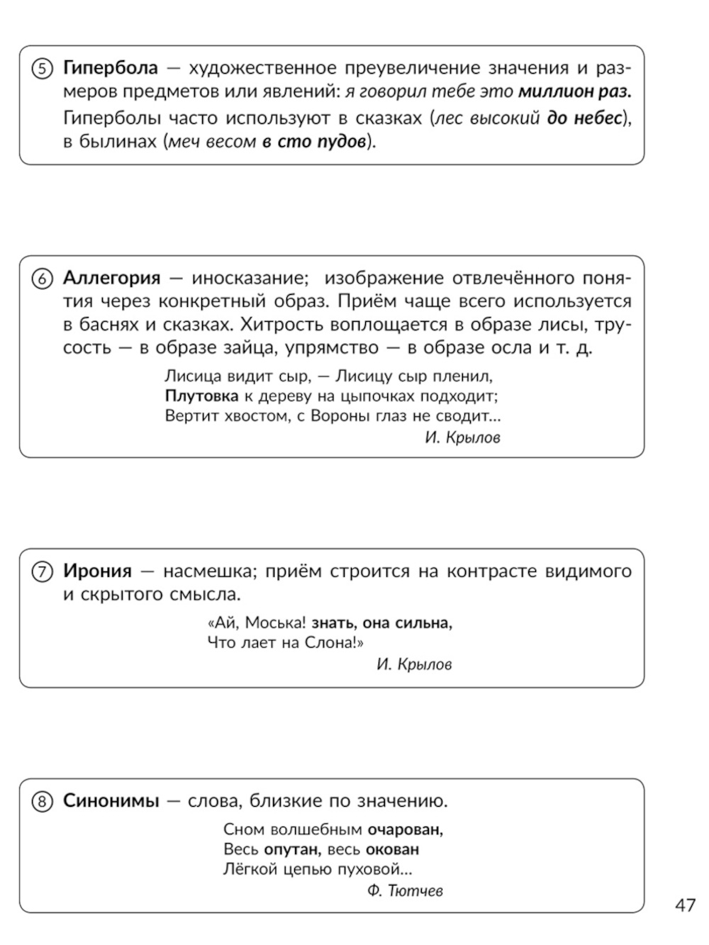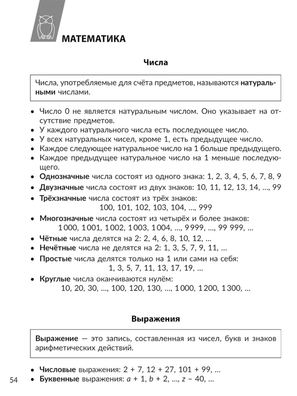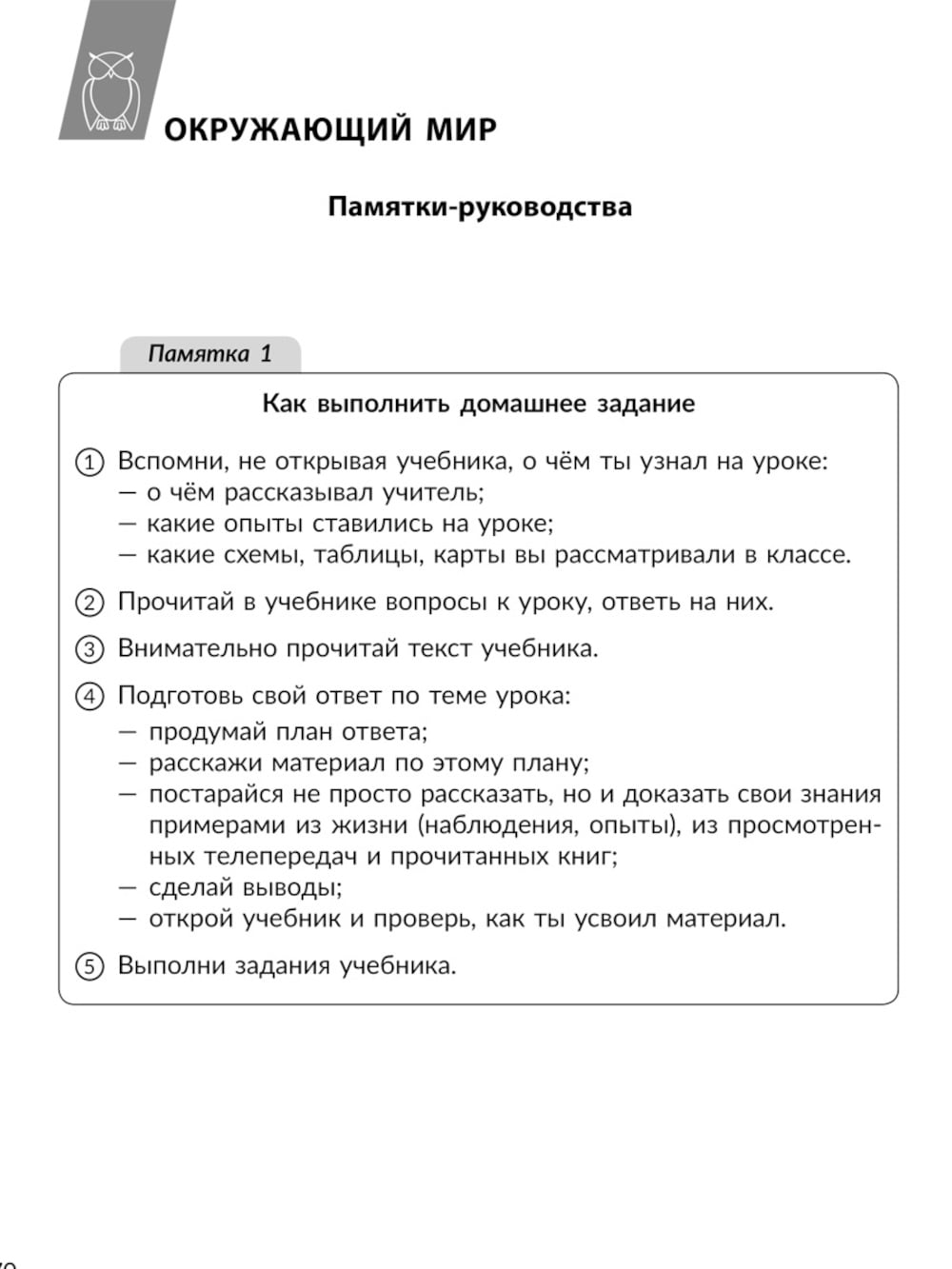 В книге приведены самые важные учебные материалы по основным школьным предметам: русскому языку, чтению, математике и окружающему миру. Материалы представлены в виде памяток, необходимых школьнику на рабочем столе ежедневно. Памятки-руководства подскажут ученику алгоритмы выполнения самых различных заданий учителя. Они помогут выполнить фонетический разбор слова и решить задачу, вспомнить правила русского языка и дать характеристику природной зоне - эти и многие другие полезные подсказки будут отличными помощниками в школе и дома, в выполнении домашних заданий и в подготовке к контрольным работам. В разделах «Чтение» и «Окружающий мир» есть также полезные для ребёнка словарики, в которые включены основные понятия, изучаемые учебной программой. Пособие адресовано младшим школьникам.| Издательство | ИД ЛИТЕРА |