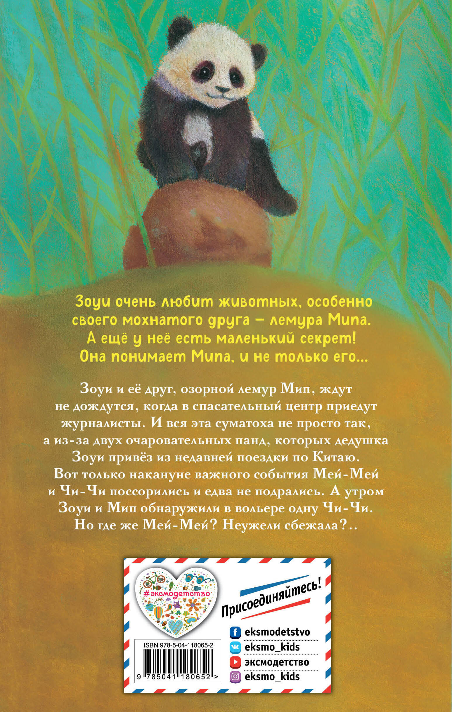 Смешные и позитивные приключения девочки, которая умеет разговаривать с животными, и ее озорного друга лемурчика Мипа. В каждой книге одна маленькая история, которая научит ребенка чему-то новому и поближе познакомит его с разными животными. С Зоуи и Мипом делать открытия вдвойне интересно! Очаровательные иллюстрации Софи Уильямс отлично дополняют рассказ и уже знакомы читателю. Именно Софи рисует для серии-бестселлера Холли Вебб «Добрые истории о зверятах». Зоуи и лемур Мип ждут не дождутся, когда в спасательный центр приедут журналисты. И вся эта суматоха не просто так, а из-за двух очаровательных панд, которых дедушка Зоуи привез из Китая. Вот только накануне важного события Мей-Мей и Чи-Чи поссорились, и Мей-Мей пропала!| Издательство | ООО "Издательство "Эксмо" |