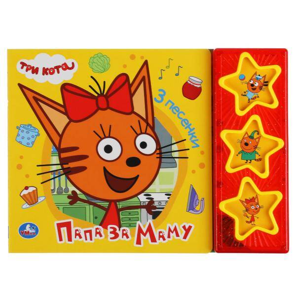 Аннотация: Папа за маму. Три Кота (3 звук. кн. с глиттером) 206х150мм 6стр Умка в кор.30шт