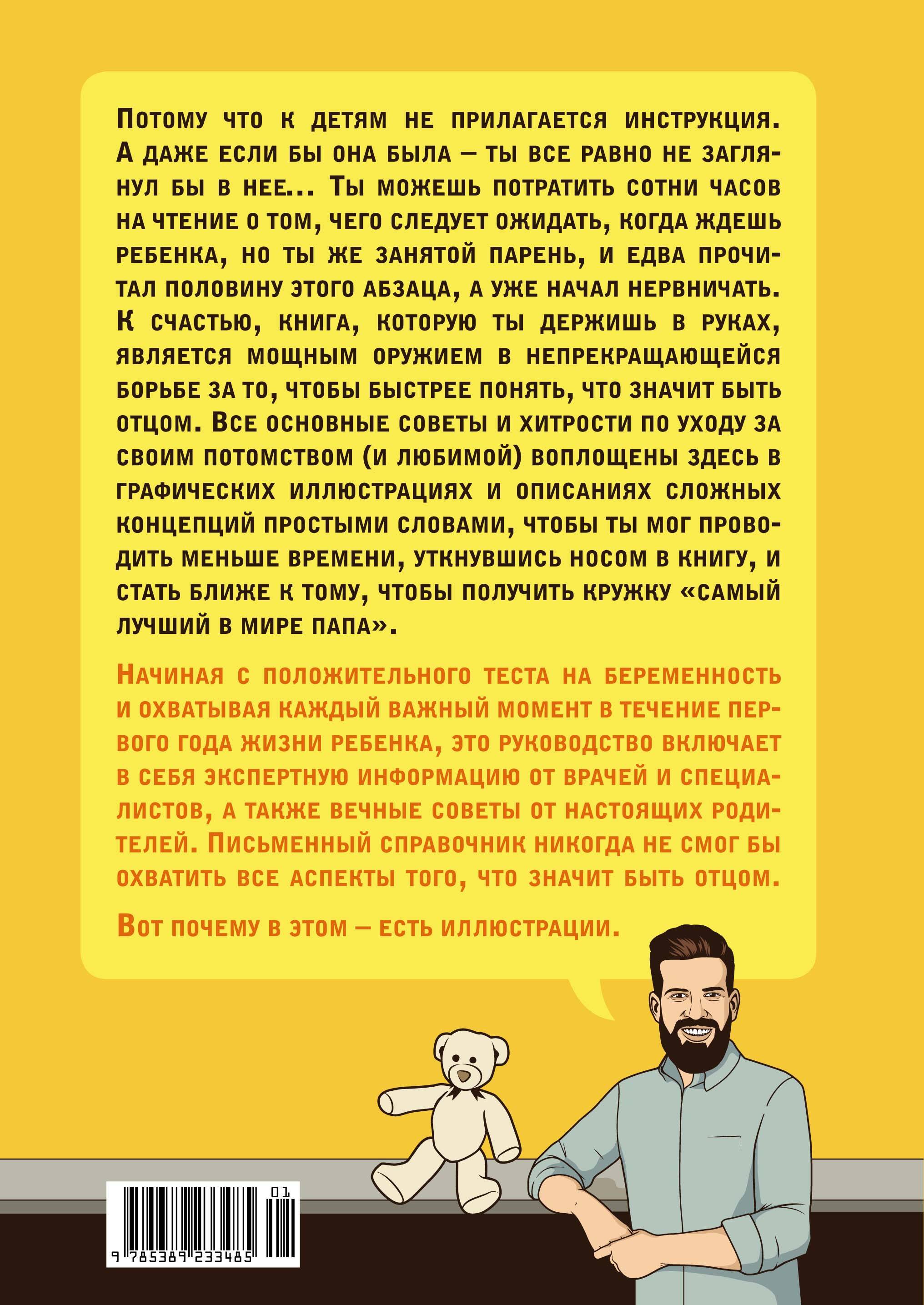 Ты можешь потратить сотни часов на чтение о том, чего следует ожидать, когда ждешь ребенка, но ты же занятой парень, и едва прочитал половину этого абзаца, а уже начал нервничать. К счастью, книга, которую ты держишь в руках, является мощным оружием в непрекращающейся борьбе за то, чтобы быстрее понять, что значит быть отцом. Все основные советы и хитрости по уходу за своим потомством (и любимой) воплощены здесь в графических иллюстрациях и описаниях сложных концепций простыми словами, чтобы ты мог проводить меньше времени, уткнувшись носом в книгу, и стать ближе к тому, чтобы получить кружку "самый лучший в мире папа". Начиная с положительного теста на беременность и охватывая каждый важный момент в течение первого года жизни ребенка, это руководство включает в себя экспертную информацию от врачей и специалистов, а также вечные советы от настоящих родителей. Письменный справочник никогда не смог бы охватить все аспекты того, что значит быть отцом. Вот почему в этом - есть иллюстрации.| Издательство | Азбука-Аттикус Издат.группа ООО |