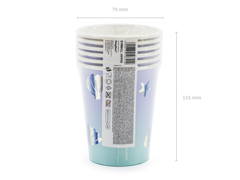 Paper cups Narwhal, mix of colours, hold up to approx. 220 ml (7.4 oz.). Beverage cups bear the printed marking required by Commission Implementing Regulation (EU) 2020/2151 of 17 December 2020 laying down rules on harmonised marking specifications on single-use plastic products listed in Part D of the Annex to Directive (EU) 2019/904 of the European Parliament and of the Council on the reduction of the impact of certain plastic products on the environment. The product is labelled only in Polish, English, Maltese, Swedish, Finnish, Danish, Italian and Lithuanian.