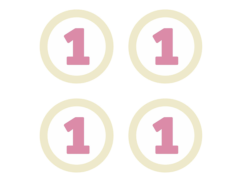 Paper decorations, white-cream with light pink number 1, diameter approx. 5.5 cm.