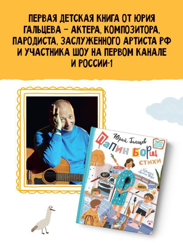 Автор сборника: Юрий Гальцев Известен как эстрадный артист, обладающий весьма разносторонними талантами: он музыкант, играющий на гитаре и баяне, клоун, певец с уникальными голосовыми возможностями, создатель великолепных ярких номеров. Многие знают о способности Юрия Гальцева сочинять песни. Он автор большинства из тех, которые составляют основу всех концертных программ и даже репертуарных спектаклей Театра Эстрады имени Аркадия Райкина. Но мало кто знает о том, что Юрий Гальцев пишет стихи для детей. Это новая, пока не изведанная, но очень светлая сторона его творчества. Взрослый человек, руководитель Театра Эстрады имени Аркадия Райкина сам порой становится ребёнком.| Издательство | ИЗДАТЕЛЬСТВО "АСТ" |