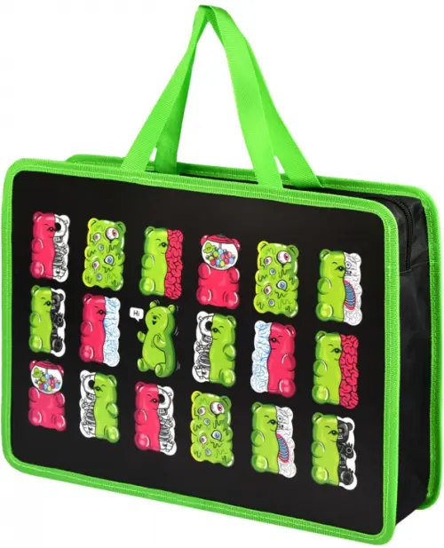 Папка для школьных тетрадей пластиковая Феникс+, арт. 66305/ 12 ЖЕЛЕЙНЫЕ МИШКИ (полипропилен, формат А4, 34х25х9.5 см, 1 отделение (-я), молния, дно с расширением, текстильные ручки, УФ-печать)