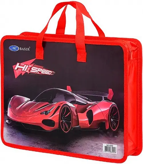Папка пластиковая: "МАШИНА"; формат А4; с тканевыми ручками и с тканевой окантовкой, рисунок-ассорти, на молнии; размер 33,5*26,5 см, ширина корешка 8 см.