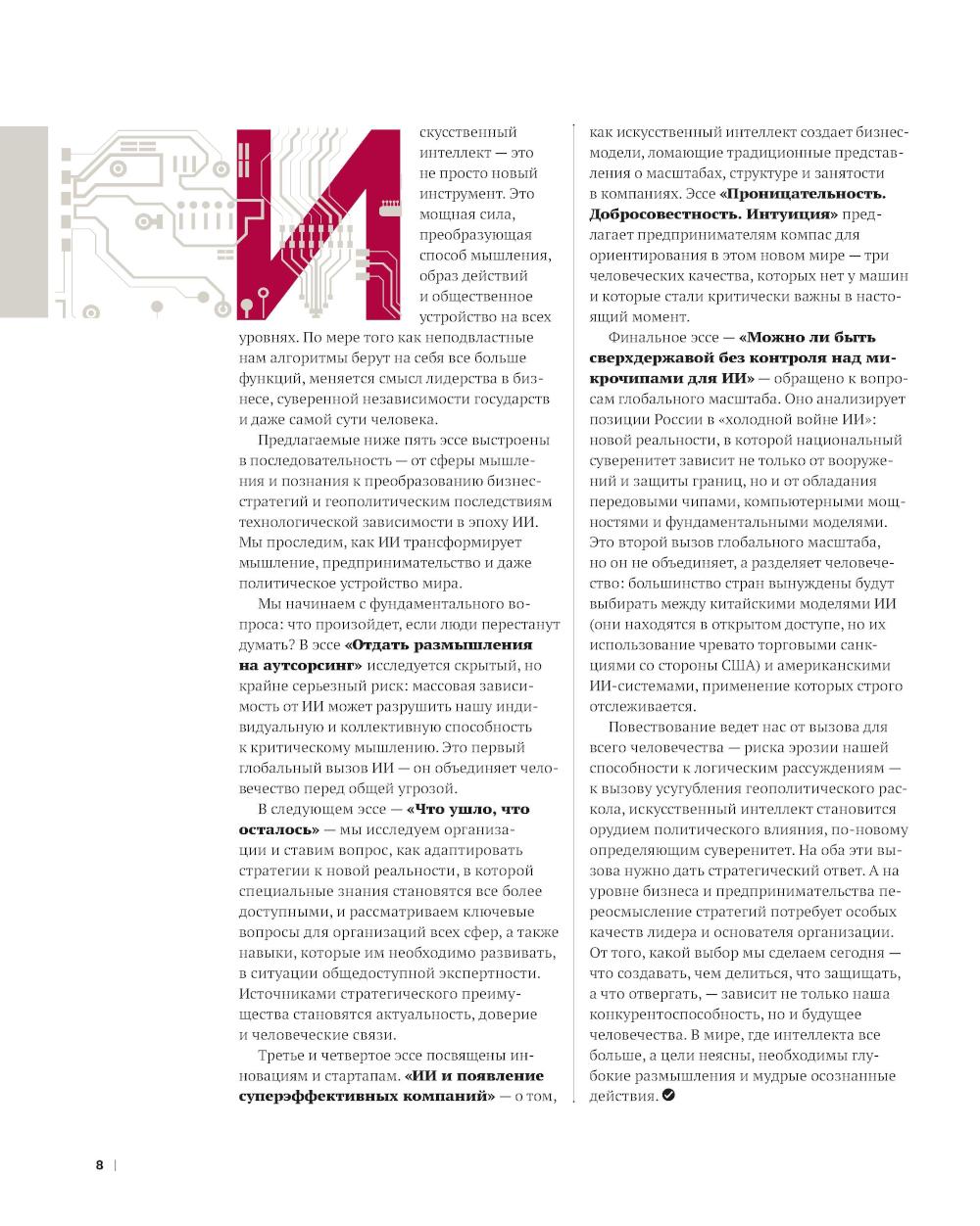 Сборник информационно-аналитических статей «Парадокс искусственного интеллекта» - 11-й в серии регулярных тематических выпусков Высшей школы бизнеса НИУ ВШЭ «Новое в менеджменте». Он посвящен развитию и применению искусственного интеллекта - самой революционной и спорной технологии нашего времени, которая обещает небывалый подъем производительности в разных отраслях и бизнес-функциях, но при этом несет в себе немалые риски. Издание предназначено для руководителей компаний, предпринимателей, преподавателей и студентов вузов, а также для широкого круга читателей, интересующихся проблемами рабочего взаимодействия человека и мощной информационной технологии.| Издательство | ИД Высшей школы экономики |