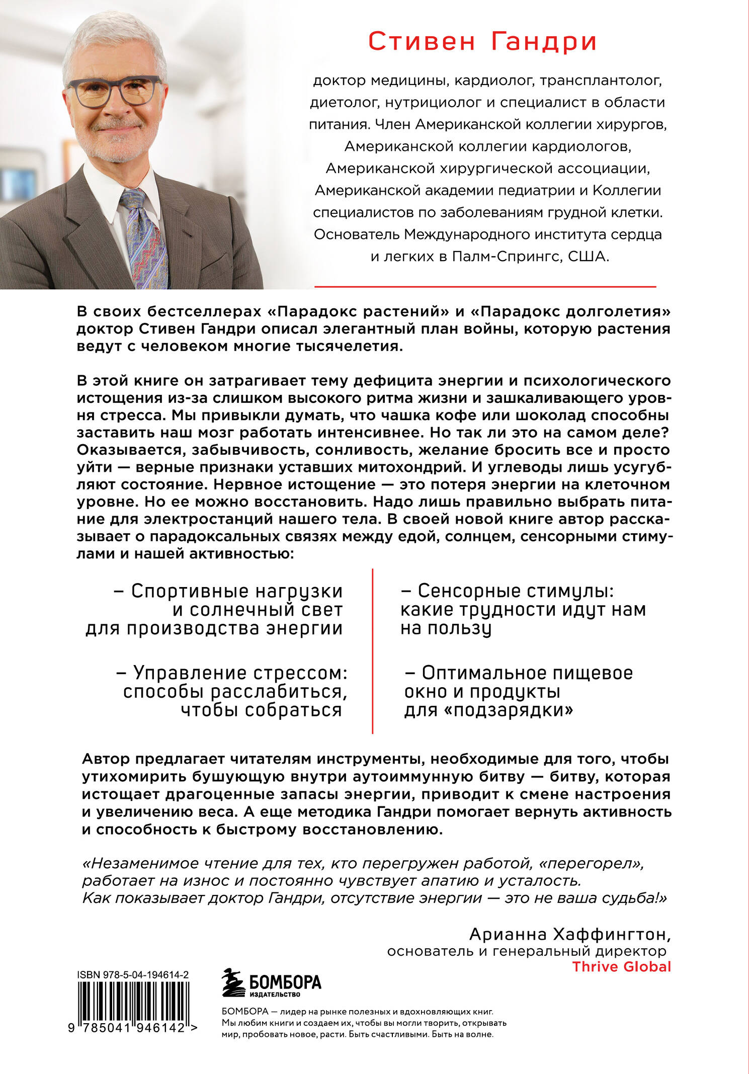 В своих бестселлерах «Парадокс растений» и «Парадокс долголетия» доктор Стивен Р. Гандри предложил принципиально новый взгляд на здоровье. В книге «Энергетический парадокс» автор описывает связь здоровья кишечника, микробиома и митохондрий и ощущения усталости, переутомления, упадка сил. Из книги читатель узнает, как «плохая» еда митохондрий приводит к развитию депрессии, хронической усталости, беспокойству и сниженному метаболизму. Когда митохондрии не получают достаточного количества топлива, вы становитесь медленнее и толще. Усталость - это сигнал тревоги, исходящий от организма, который предупреждает нас о том, что что-то не так. В книге «Энергетический парадокс» доктор Гандри предлагает читателям информацию и инструменты, необходимые для того, чтобы утихомирить бушующую внутри аутоиммунную битву - битву, которая истощает драгоценные запасы энергии, оставляя вас склонными к смене настроения и увеличению веса. Рекомендации по питанию + 30 новых рецептов + списки продуктов, повышающих уровень энергии.| Издательство | ООО "Издательство "Эксмо" |