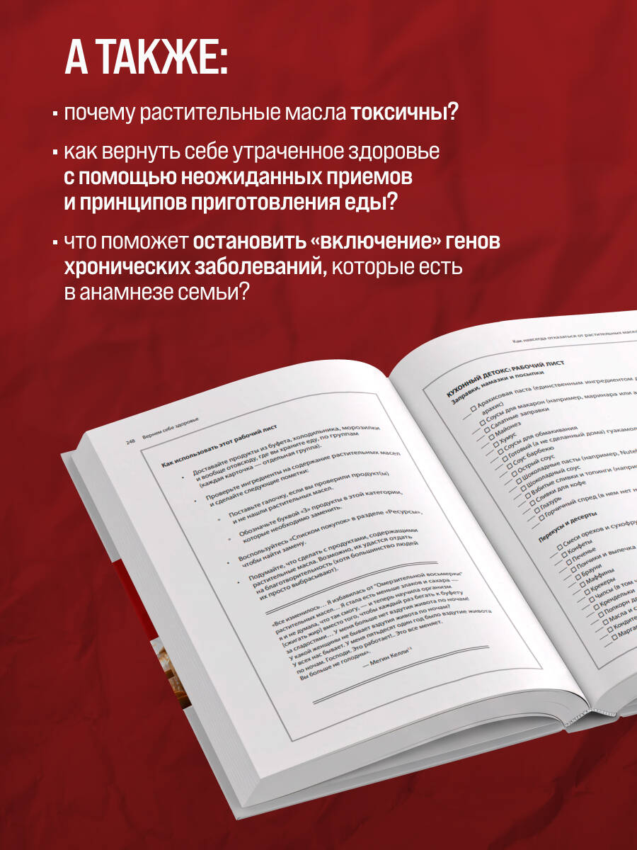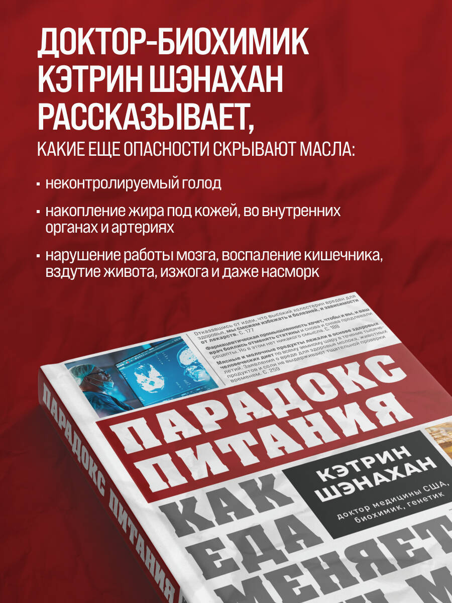 Знаете ли вы, что употребление большой порции картофеля фри, приготовленного на растительном масле, приводит к токсичности, сравнимой с выкуриванием 24 сигарет? Биохимик, получившая образование в Корнелле и ставшая семейным врачом, доктор Кейт Шэнахан знакомит нас с уважаемыми учеными, которые предупреждают: растительные масла представляют собой катастрофу для общественного здравоохранения, разрушая клетки нашего организма, истощая антиоксиданты и способствуя токсичности свободных радикалов. Многочисленные негативные эффекты потребления нездоровых масел включают в себя: - Неконтролируемый голод (поэтому нам нужны лекарства для поддержания веса). - Накопление жира под кожей, во внутренних органах и артериях. - Скачки уровня сахара в крови, которые способствуют плохому настроению и даже деструктивному поведению. - Нарушение работы мозга, проблемы с концентрацией внимания и психические заболевания. - Внутриклеточный окислительный стресс, участвующий в процессе развития рака. - Воспаление кишечника, вздутие живота, изжогу и насморк. В качестве решения проблемы автор предлагает четкий, продуманный план, который соответствует нашим генетическим потребностям и законам природы. К счастью, восстановление нашего здоровья упрощается благодаря тому, что питательные вещества, которые лечат одно заболевание, также способствуют лечению всех остальных. В качестве дополнительного бонуса мы восстанавливаем наше чувство вкуса, и в конце концов нас начинает «тянуть» на полезные, питательные продукты.| Издательство | ООО "Издательство "Эксмо" |