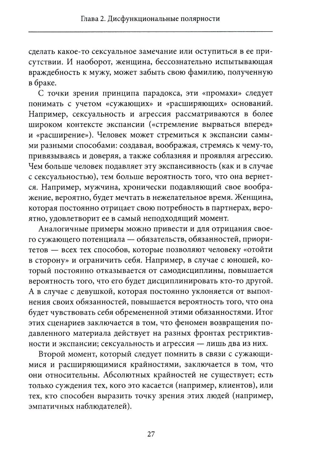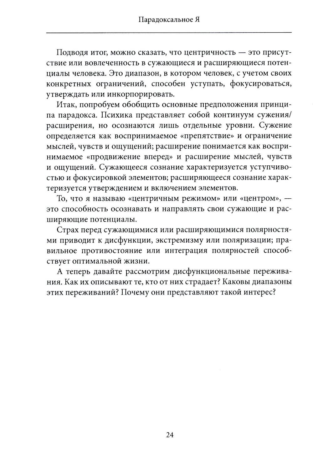 Успешно применяя свою модель к различным дисфункциональным синдромам, доктор Шнайдер переходит к описанию ее значимости для психологического здоровья. На примере многочисленных свидетельств испытуемых он показывает применимость данной модели в области творчества, физического здоровья, для религиозных и социальных организаций, в сфере воспитания детей и психотерапии.| Издательство | ИОИ |