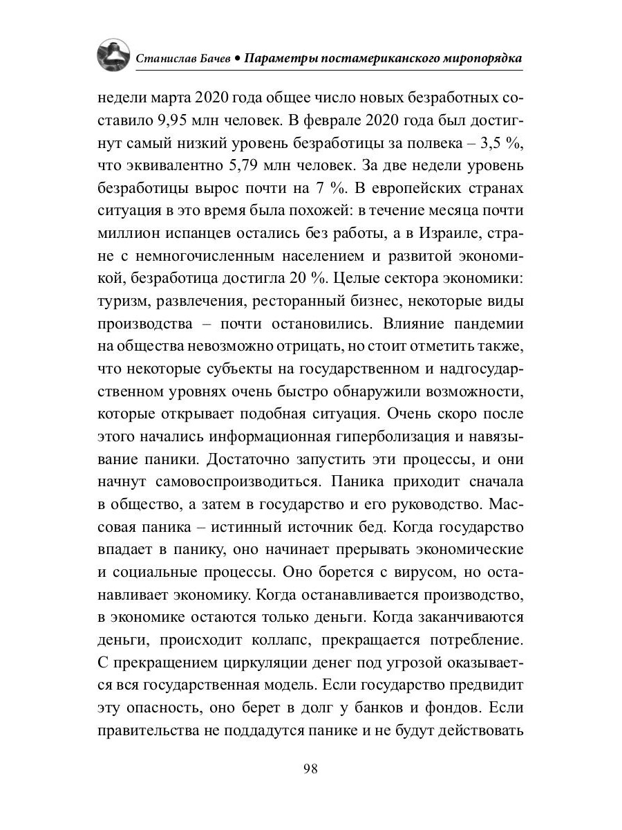 Пандемия коронавируса стала «последней соломинкой», которая приведет к изменению мирового порядка. Кризис 2020 года стал катализатором этих процессов. В книге говорится об однополюсном мире: США и все остальные. Такая модель отношений между государствами началась после окончания холодной войны и провалилась вместе с идеей «американской мечты»: иллюзорным шансом стать успешным и богатым. Корпорации США не нуждаются в государстве, они не учитывают общественные интересы. Россия вместе с Китаем снова претендуют на мировое лидерство, несмотря на противодействия со стороны США.