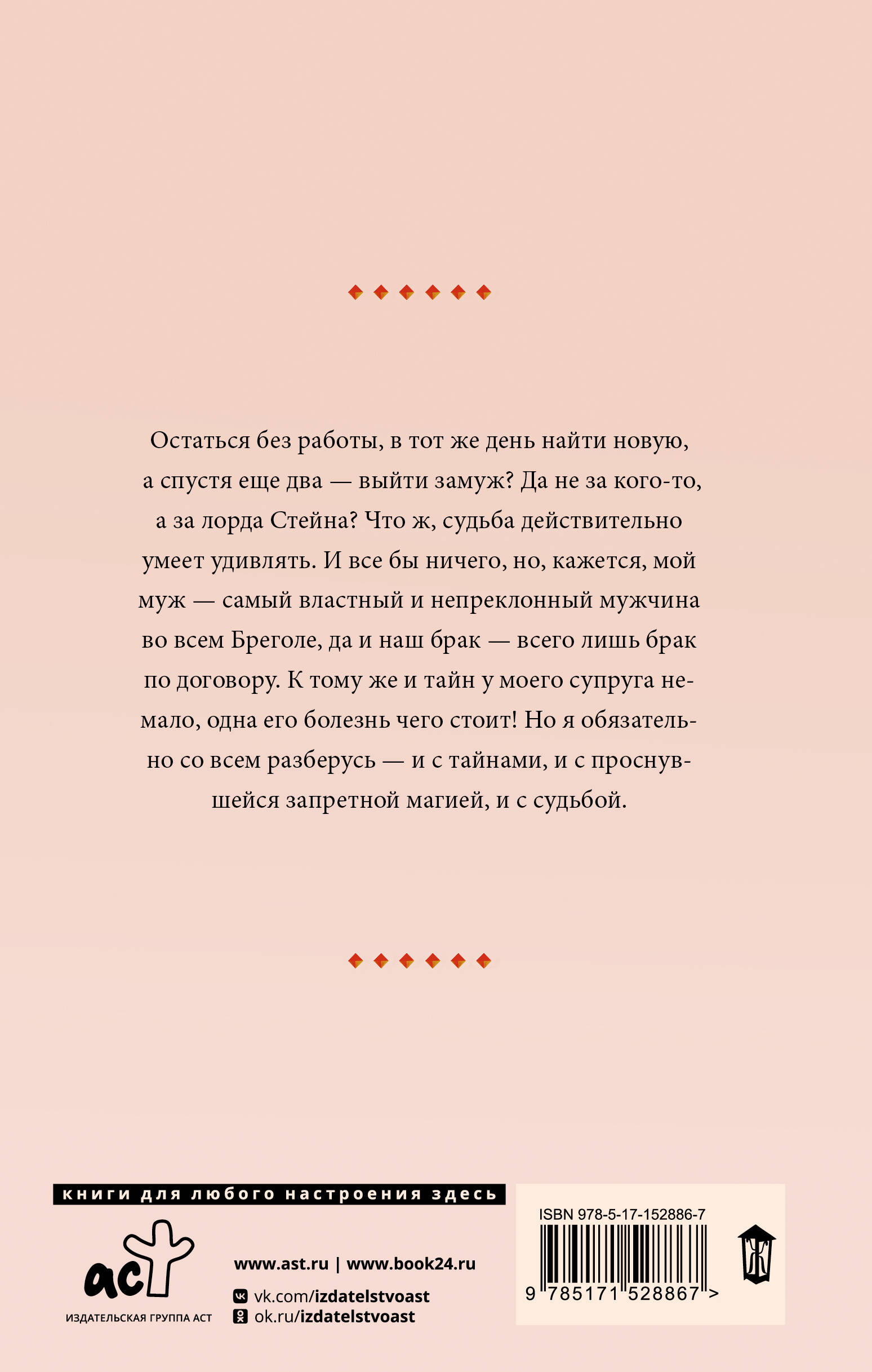 Остаться без работы, в тот же день найти новую, а спустя еще два - выйти замуж? Да не за кого-то, а за лорда Стейна? Что ж, судьба действительно умеет удивлять. И все бы ничего, но, кажется, мой муж - самый властный и непреклонный мужчина во всем Бреголе, да и наш брак - всего лишь брак по договору. К тому же и тайн у моего супруга немало, одна его болезнь чего стоит! Но я обязательно со всем разберусь - и с тайнами, и с проснувшейся запретной магией, и с судьбой.| Издательство | Издательство "АСТ" |
