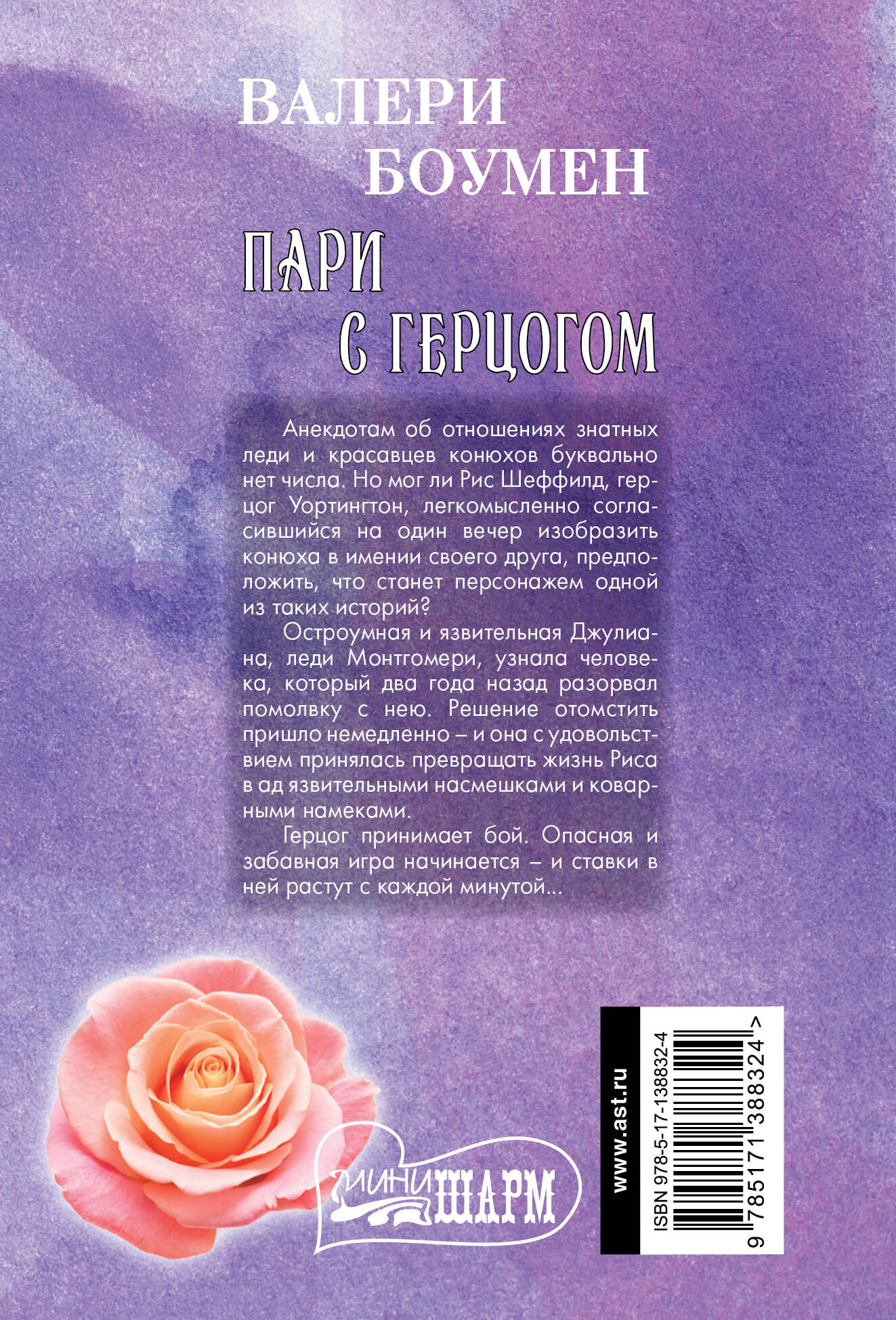 Анекдотам об отношениях знатных леди и красавцев конюхов буквально нет числа. Но мог ли Рис Шеффилд, герцог Уортингтон, легкомысленно согласившийся на одинг вечер изобразить конюха в имении своего друга, предположить, что станет персонажем одной из таких историй? Остроумная и язвительная Джулиана, леди Монтгомери, узнала человека, который два года назад разорвал помолвку с нею. Решение отомстить пришло немедленно - и она с удовольствием принялась превращать жизнь Риса в ад язвительными насмешками и коварными намеками. Герцог принимает бой. Опасная и забавная игра начинается - и ставки в ней растут с каждой минутой...| Издательство | ИЗДАТЕЛЬСТВО "АСТ" |