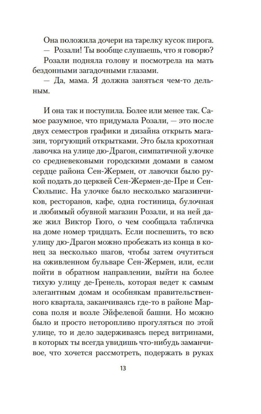Больше всего на свете Розали, хозяйка крохотного магазина открыток в центре Парижа, любила синий цвет... Но ей и в голову не могло прийти, что однажды, вместе с маститым французским писателем, книгами которого она зачитывалась с детства, а также молодым и очень симпатичным американским профессором, она попадет в совершенно невероятную историю и синий цвет сыграет в ней такую важную роль. И уж тем более она не могла предположить, что эта история - и скрытая в ней тайна - полностью перевернет ее жизнь и сделает самой счастливой девушкой на свете. Впрочем, «весна порой исполняет обещания, которых не сдержала зима»...| Издательство | Азбука |