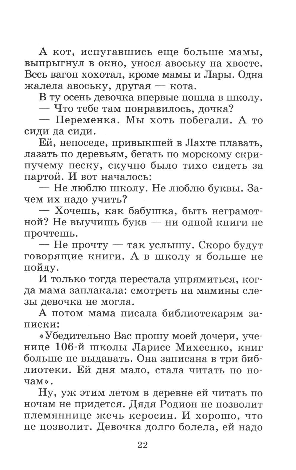 Повесть рассказывает о реальной героине Великой Отечественной войны - юной партизанке Ларе Михеенко. Школьница, оказавшись на оккупированной территории, добровольно вступает в партизанский отряд и выполняет опасные задания: ведёт разведку, участвует в диверсиях. Несмотря на страх и лишения, она проявляет мужество, стойкость и верность Родине. Книга - трогательный рассказ о подвиге ребёнка на войне, о цене победы и памяти поколений.