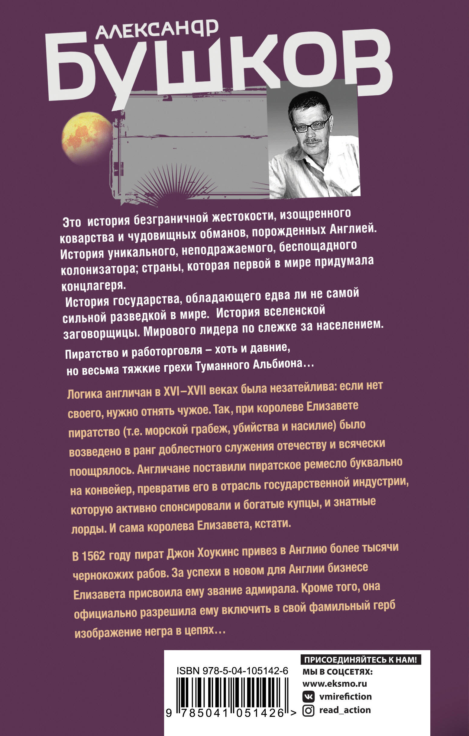 Это история безграничной жестокости, изощренного коварства и чудовищных обманов, порожденных Англией. История уникального, неподражаемого, беспощадного колонизатора; страны, которая первой в мире придумала концлагеря. История государства, обладающего едва ли не самой сильной разведкой в мире. История вселенской заговорщицы. Мирового лидера по слежке за населением. Пиратство и работорговля - хоть и давние, но весьма тяжкие грехи Туманного Альбиона… Логика англичан в XVI-XVII веках была незатейлива: если нет своего, нужно отнять чужое. Так при королеве Елизавете пиратство (т.е. морской грабеж, убийства и насилие) было возведено в ранг доблестного служения отечеству и всячески поощрялось. Англичане поставили пиратское ремесло буквально на конвейер, превратив его в отрасль государственной индустрии, которую активно спонсировали и богатые купцы, и знатные лорды. И сама королева Елизавета, кстати. В 1562 пират Джон Хоукинс привез в Англию более тысячи чернокожих рабов. За успехи в новом для Англии бизнесе Елизавета присвоила ему звание адмирала. Кроме того, она официально разрешили ему включить в свой фамильный герб изображение негра в цепях…| Издательство | ООО "Издательство "Эксмо" |
