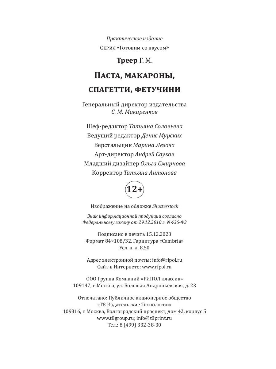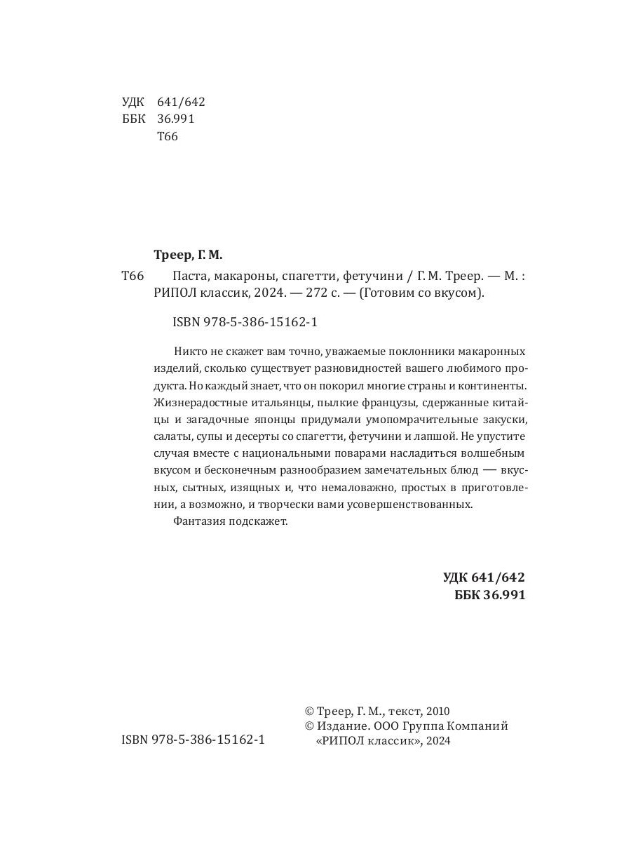 Никто не скажет вам точно, уважаемые поклонники макаронных изделий, сколько существует разновидностей вашего любимого продукта. Но каждый знает. Что он покорил многие страны и континенты. Жизнерадостные итальянцы, пылкие французы, сдержанные китайцы и загадочные японцы придумали умопомрачительные закуски, салаты, супы и десерты со спагетти, фетучини и лапшой. Не упустите случая вместе с национальными поварами насладиться волшебным вкусом и бесконечным разнообразием замечательных блюд - вкусных, сытых, изящных и, что немаловажно, простых в приготовлении, а возможно, и творчески вами усовершенствованных. Фантазия подскажет.| Издательство | Рипол Классик |