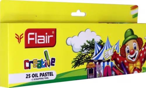 Масляная пастель FLAIR CREATIVE идеально подходит для уроков рисования. При использовании дает глубокий насыщенный цвет и красивую фактуру. Масляная пастель подходит для использования практически на любой поверхности. 25 цветов позволяют полностью передать цветовую палитру. Пастель имеет вид брусков с круглым сечением, обёрнутых в бумажную обёртку. Она позволяет сохранять руки и одежду чистыми. Не токсична и безопасна при использовании. Благодаря компактной упаковке удобно брать с собой.