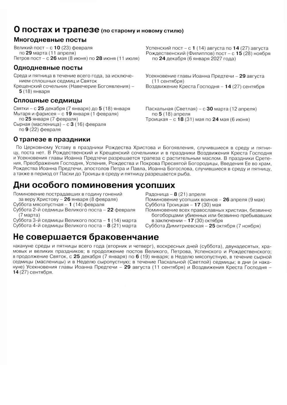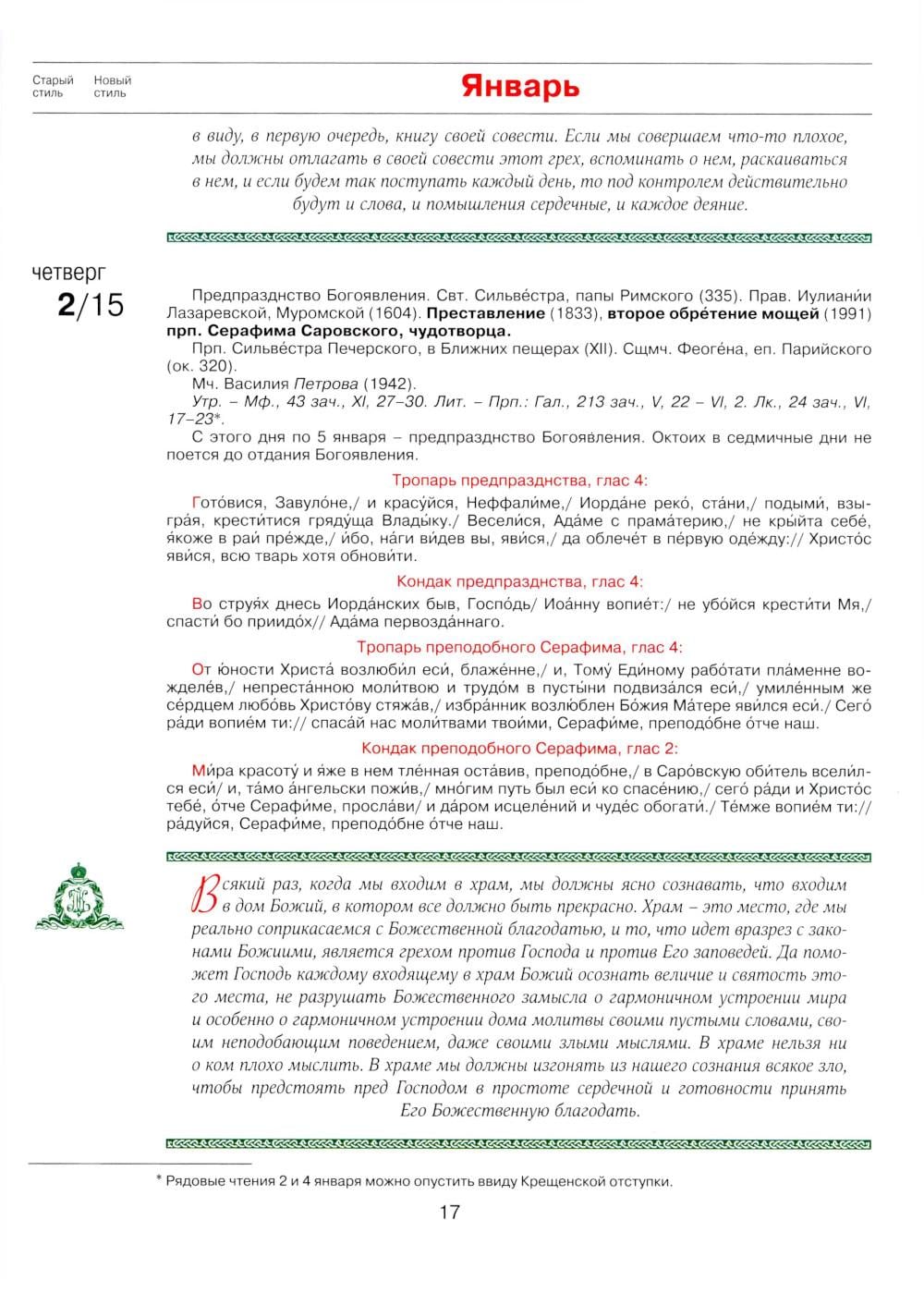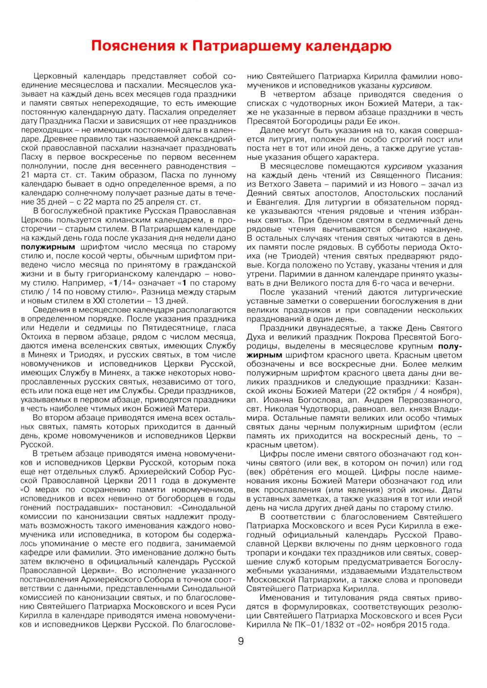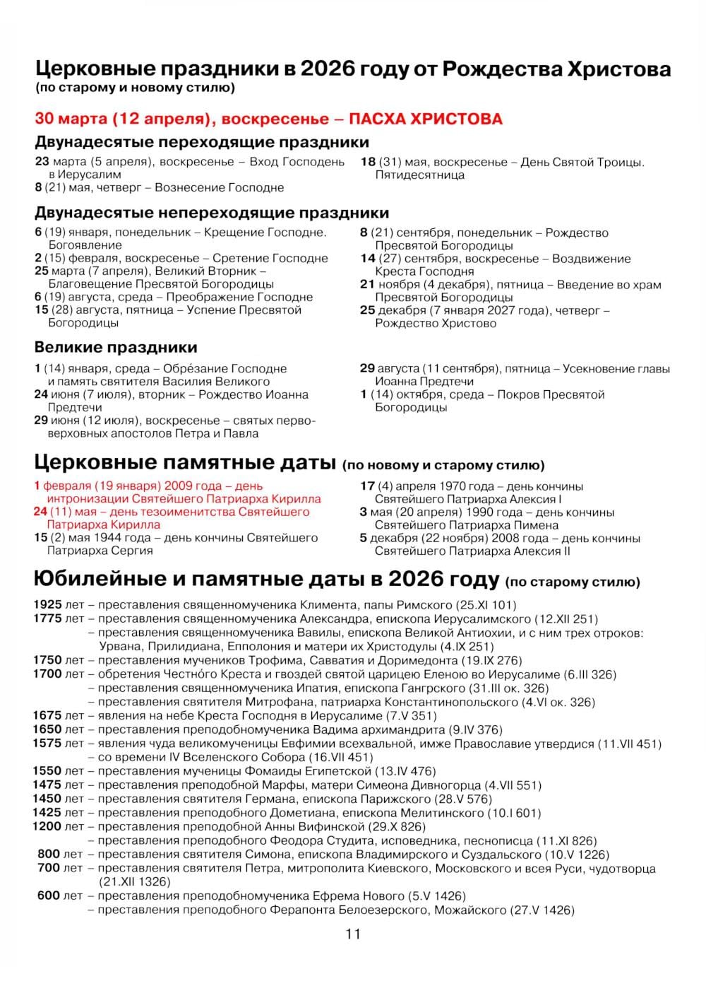 Патриарший календарь на 2026 год