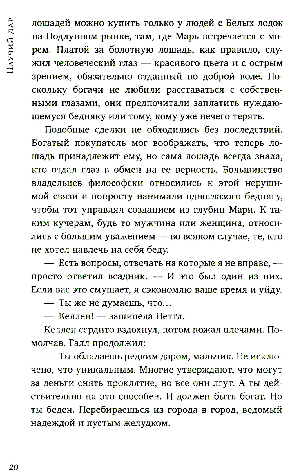 Каждый житель Рэддиша рискует быть проклятым. Любой незнакомец под подозрением. Яйцо проклятия зреет в душе проклинателя, напитываясь ненавистью до тех пор, пока тот не будет готов обрушить его на жертву. И тогда у проклятого есть лишь один шанс на спасение. Келлен способен расплетать проклятия. Так он спас Неттл, обращенную в цаплю, вернул ей человеческий облик. Теперь они вместе путешествуют по Рэддишу, спасая жителей. Однажды и самого Келлена кто-то проклинает, и все подозрения падают на Неттл... Что, если его уникальный дар на самом деле проклятие?