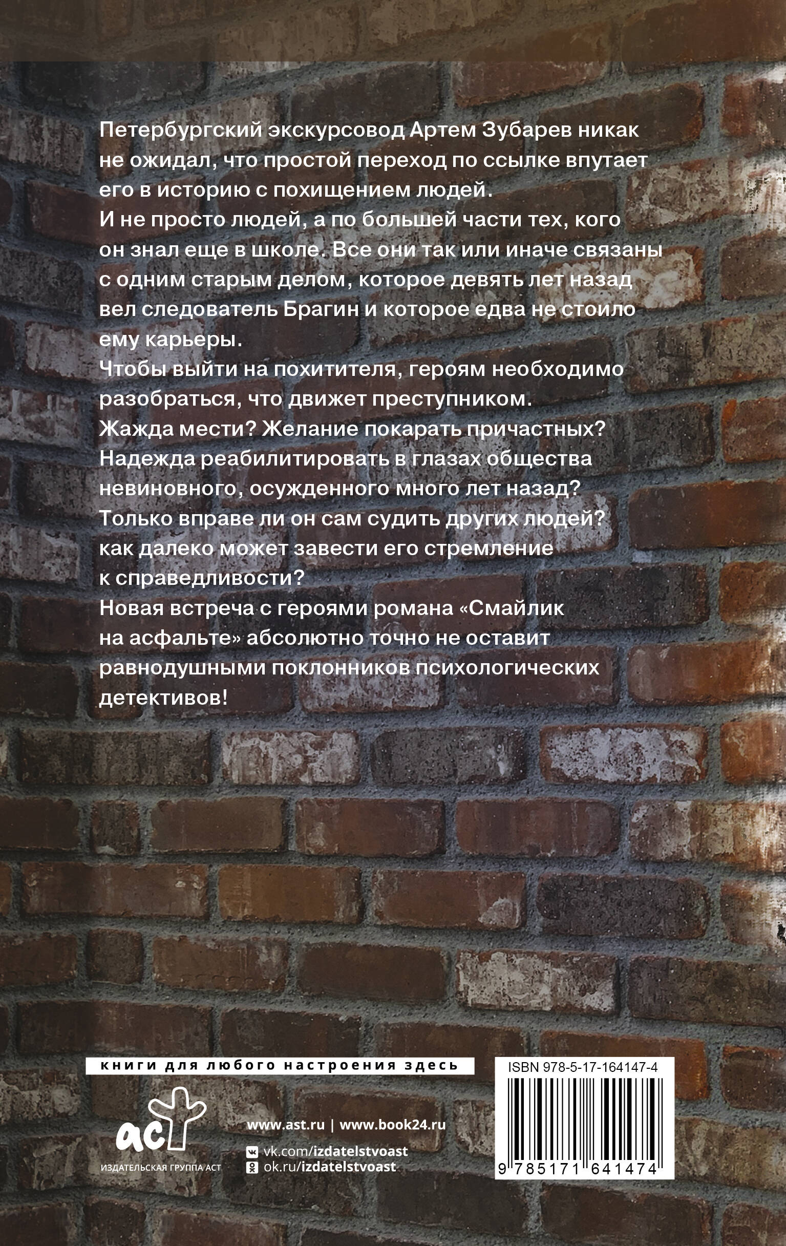 Петербургский экскурсовод Артем Зубарев никак не ожидал, что простой переход по ссылке впутает его в историю с похищением людей. И не просто людей, а по большей части тех, кого он знал еще в школе. Все они так или иначе связаны с одним старым делом, которое девять лет назад вел следователь Брагин и которое едва не стоило ему карьеры. Чтобы выйти на похитителя, героям необходимо разобраться, что движет преступником. Жажда мести? Желание покарать причастных? Надежда реабилитировать в глазах общества невиновного, осужденного много лет назад? Только вправе ли он сам судить других людей? И как далеко может завести его стремление к справедливости? Новая встреча с героями романа "Смайлик на асфальте" абсолютно точно не оставит равнодушными поклонников психологических детективов!| Издательство | Издательство "АСТ" |