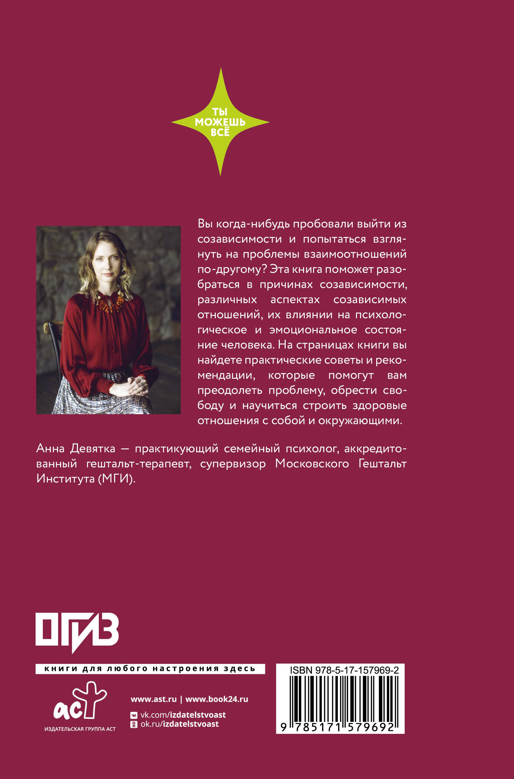 В своей книге Анна Девятка, психолог с многолетним опытом работы, в полной мере раскрывает явление созависимости, ее причины, последствия, механизмы возникновения созависимых отношений, их влияние на человека. Практические рекомендации и авторские упражнения помогут разобраться в себе, своих чувствах и отношениях с окружающими, научат выстраивать здоровые и гармоничные отношения с родными, близкими, друзьями, коллегами. Книга будет полезна всем, кто попал в сладкую паутину созависимости и стремится преодолеть проблему.| Издательство | Издательство "АСТ" |