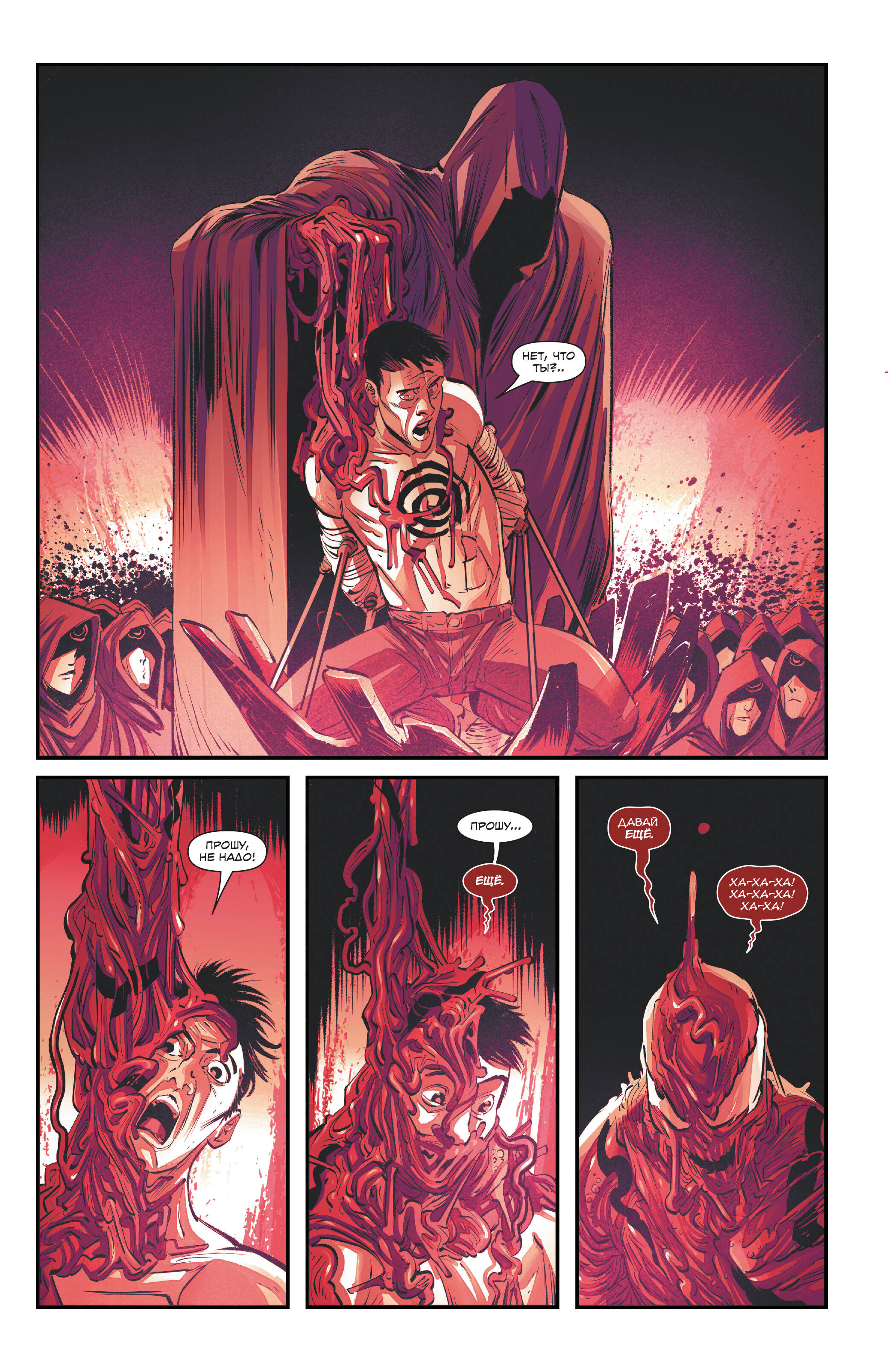 Отправляйтесь вслед за знаменитым симбиотом на поля Вьетнамской войны, в таинственный подземный город, в открытый космос и даже на другие планеты! Узрите рождение и множество перерождений Клетуса Кэссиди, кровавые ритуалы культа Карнажа, а также начало беспощадной охоты во славу бога тьмы Нулла!