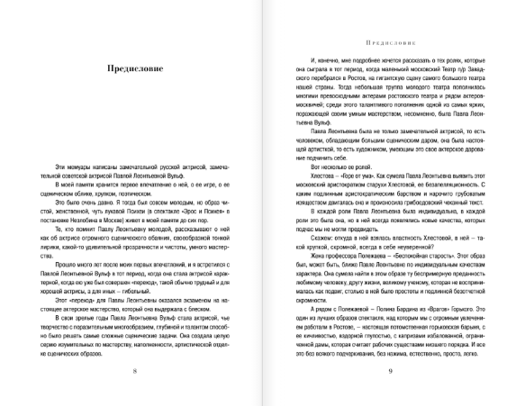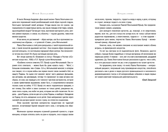 О Павле Вульф современники говорили, что она «большая актриса, с индивидуальным талантом, тонким художественным чутьем», предрекали ей яркое театральное будущее и каждую сыгранную ею роль называли шедевром. Ученица В. Комиссаржевской, она всегда старалась проникнуть в самую суть образа и естественно подать его, о чем блистательно написала в своей книге. Режиссеры давали ей главные роли в спектаклях, а зрители восторженно аплодировали. Одна из поклонниц П. Вульф пожелала учиться у нее актерскому мастерству и стала великой Раневской.