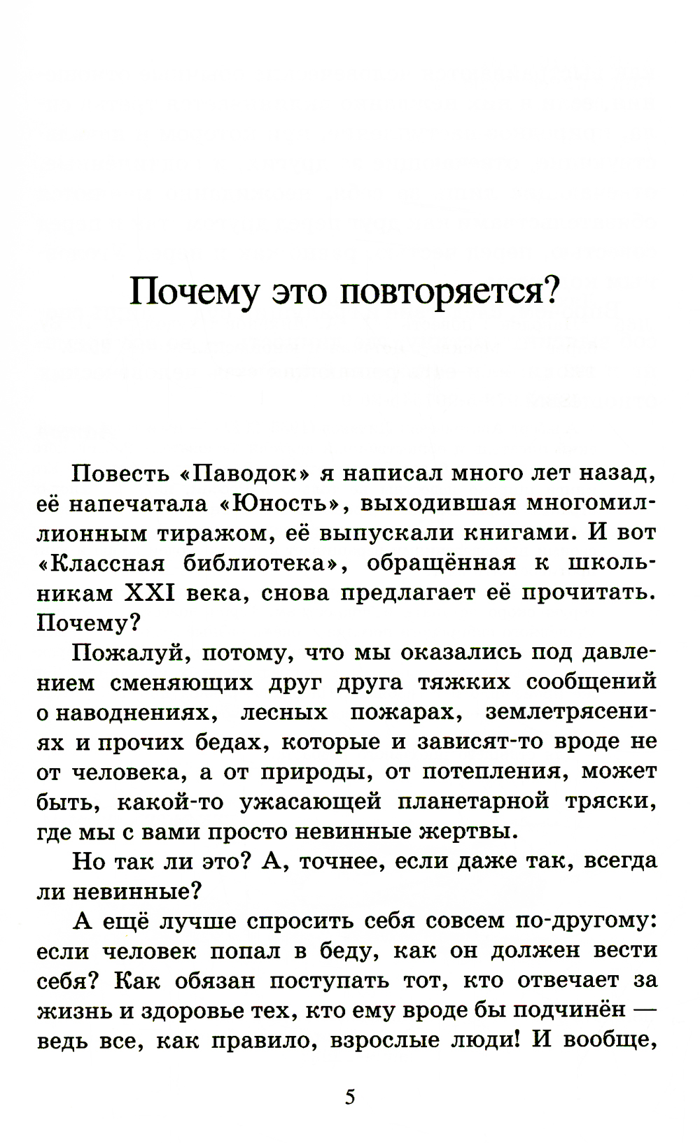 Остросюжетная повесть «Паводок» - о жизни взрослых, в которую скоро вступать и подросткам. Герои повести - жители удалённого сибирского посёлка - очень разные люди, с разными нравственными установками. Истинная суть человеческих характеров обычно раскрывается в непредвиденных ситуациях. Так же произошло и с героями «Паводка»: равнодушие и безответственность всего двоих привели к трагическому случаю в полевой экспедиции.