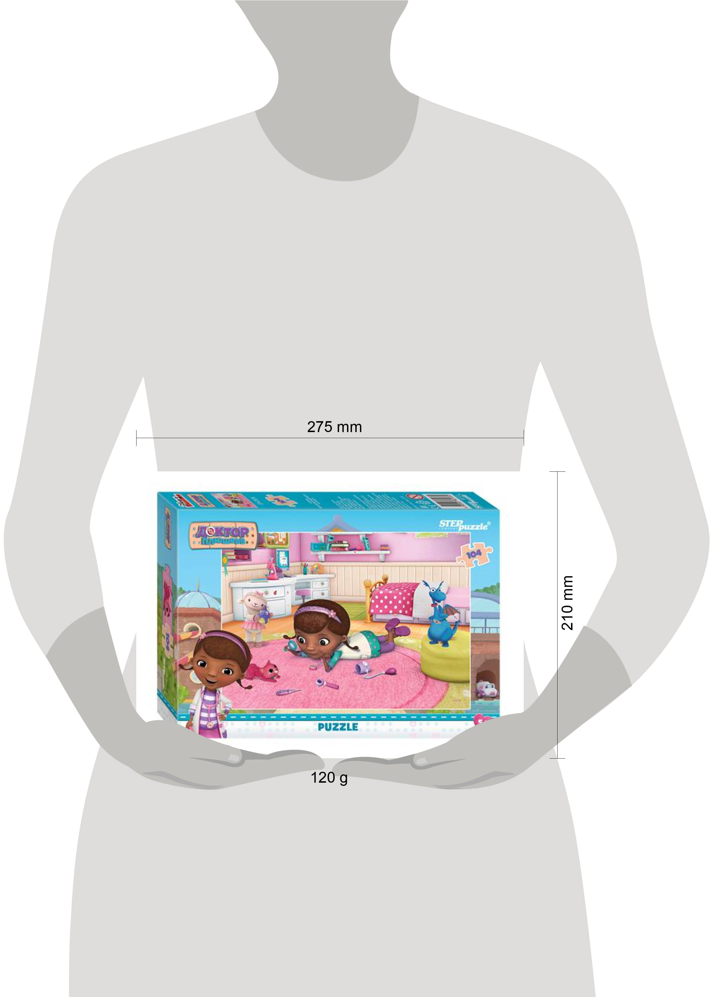 Пазл "Доктор Плюшева" создан по мотивам мультфильма "Доктор Плюшева" (Disney). История рассказывает о шестилетней девочке Дотти, которая захотела стать врачом. Пазл имеет качественное изображение. Крупные детали пазла удобные в манипулировании, эргономичны для детской руки, активно развивают мышление, внимание и память. Количество элементов: 104. Размер готовой картинки: 23x33 см. Размер элемента: 2,5x3 см. Материалы: картон, бумага. Возраст: 5+. Содержит мелкие элементы.| Издательство | Степ Пазл ЗАО |