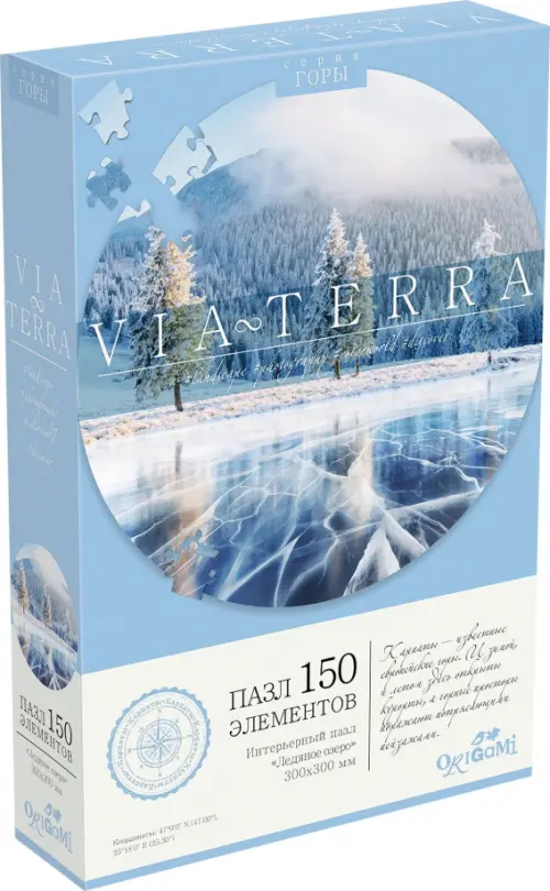 Уникальный круглый пазл 150 элементов "Ледяное озеро" новой линейки Via Terra серии "Горы". Красочные фотографии, взятые за основу, захочется собрать и взрослым и детям, а также пазл является отличным украшением любого интерьера! На каждой упаковке можно найти уникальное описание места, изображенного на ней. Сборка пазла - это отличное времяпрепровождение для всей семьи.