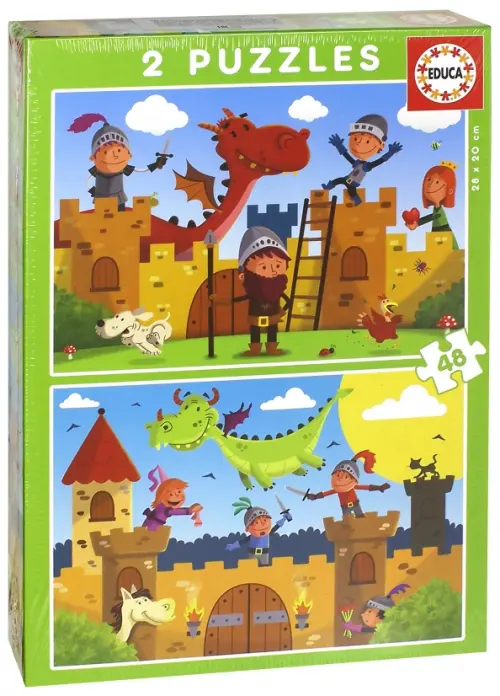 Пазл 2 в 1. Драконы и рыцари, 2х20 деталей