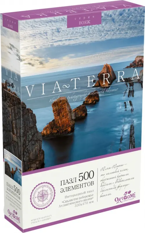 Пазл 500 элементов "Скалистое побережье Атлантического океана" - это интерьерный пазл, входящий в новую серию Via Terra. Красочные фотографии, взятые за основу серии, захочется собрать и взрослым и детям, а также пазл является отличным украшением любого интерьера! На каждой упаковке можно найти уникальное описание места, изображенного на ней. Сборка пазла - это отличное времяпрепровождение для всей семьи.