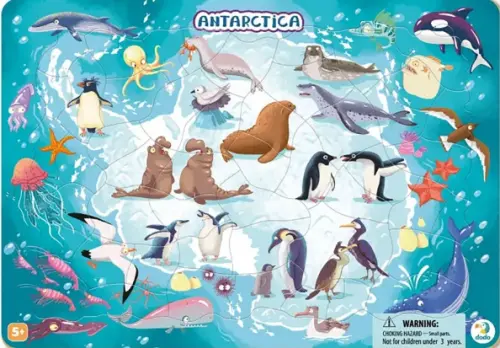 Пазл "Антарктида" состоит из 53элементов, и основной рамки-шаблона. Задача малыша: заполнить рамку недостающими фрагментами мозаики. В процессе игры активно работает логическое мышление, наглядное и образное восприятие, фантазия и воображение, мелкая моторика рук, внимательность и аккуратность.