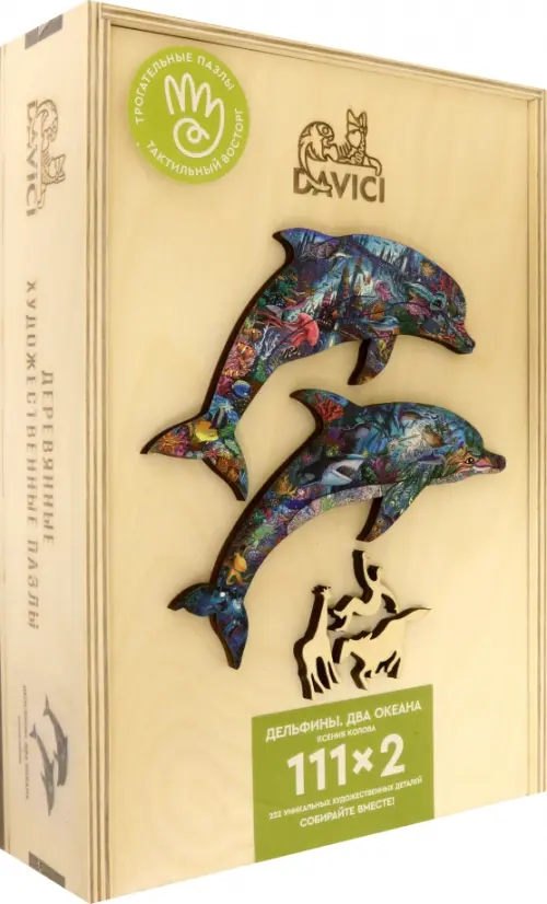 Впервые автор картины, Ксения Колова, выступает автором реза пазла. Океанские обитатели - животные и растительные организмы, обретают форму и объем в деревянных деталях пазла.