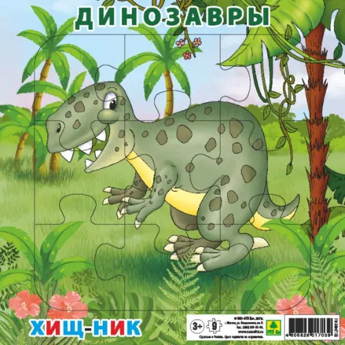 Пазл для малышей на подложке. Динозавры. Хищник, 9 элементов