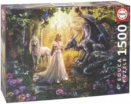 Пазл. Дракон, принцесса и единорог, 1500 деталей
