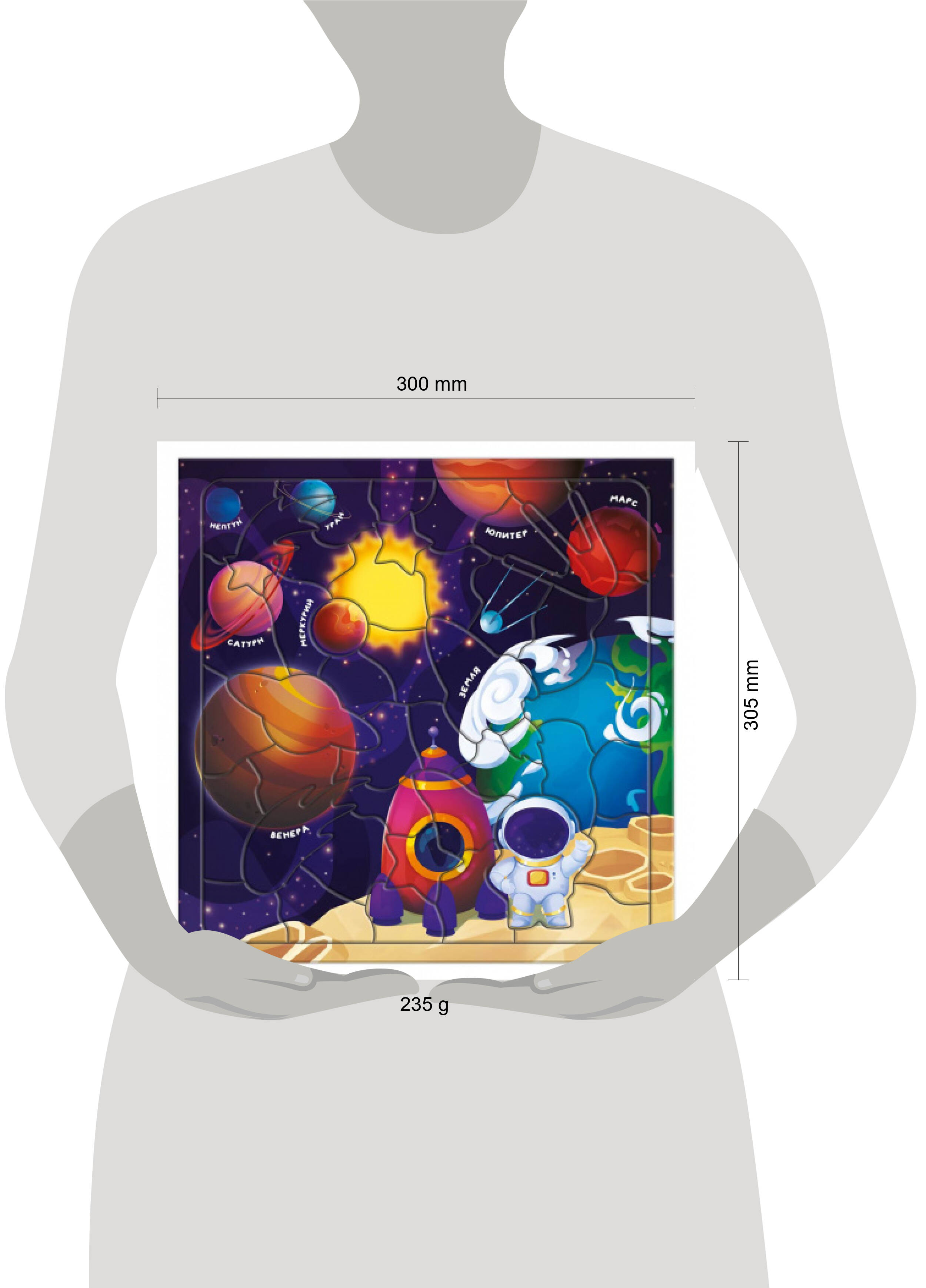 Аннотация: Пазл фигурный на подложке. 45 деталей. Космос. 30х30,5 см. ГЕОДОМ