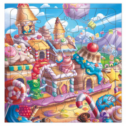 Аннотация: Пазл фигурный на подложке. 80 деталей. Сладкий город. 30х30,5 см. ГЕОДОМ