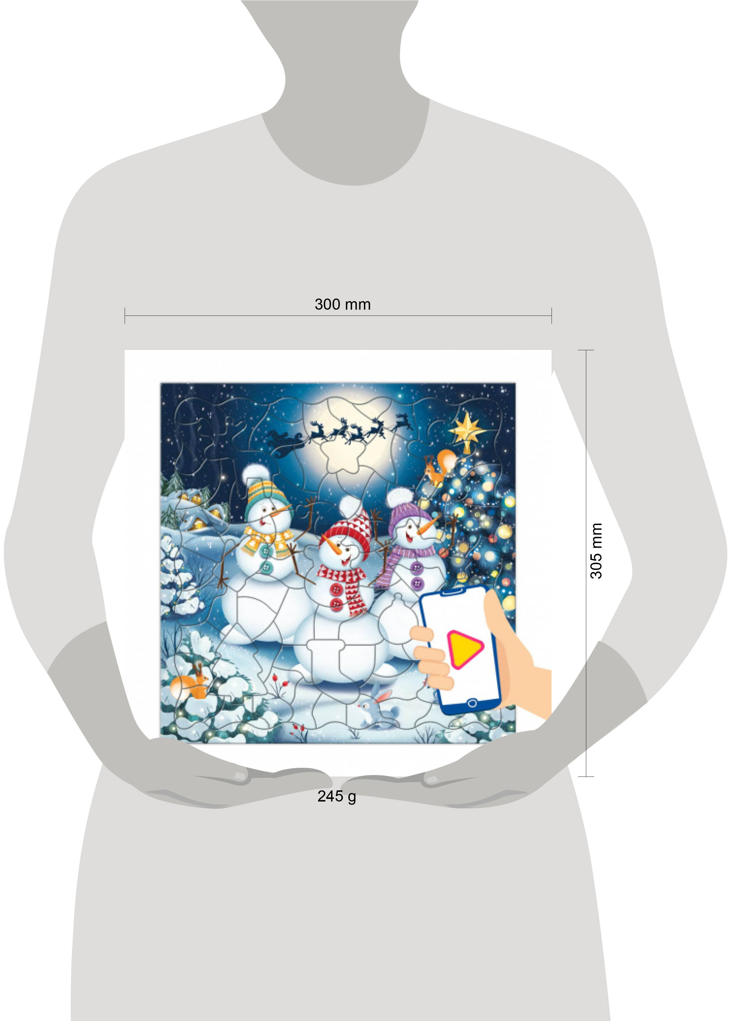 Пазл фигурный на подложке+Дополненная реальность. 80 деталей. Танцующие снеговики. 30х30,5 см. ГЕОДО