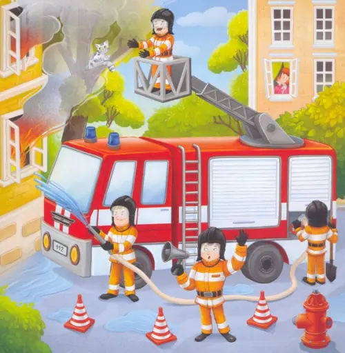 Слышишь звук сирены? Это пожарная машина спешит на помощь! Правильно сложи все фрагменты - и увидишь, как работает команда отважных пожарных. Среди элементов пазла - фигурка пожарного, каска, огнетушитель, инструменты и даже пламя! Отсканируй QR-код, наведи камеру на изображение - и картинка со звуком оживёт. Пазл тренирует мелкую моторику, внимание, память и способствует развитию мышления. А благодаря рамке и фрагментам из плотного картона пазл удобно хранить и брать с собой.
