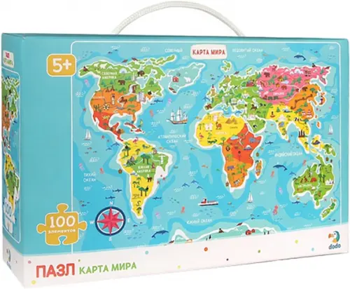 Пазл "Карта мира" в собранном состоянии представляет собой карту земного шара, с его материками, океанами, странами, морями, реками. Чтобы посмотреть на планету со стороны, малышу предстоит соединить пазл за пазлом. При этом ему следует быть очень внимательным, чтобы правильно сложить элементы.