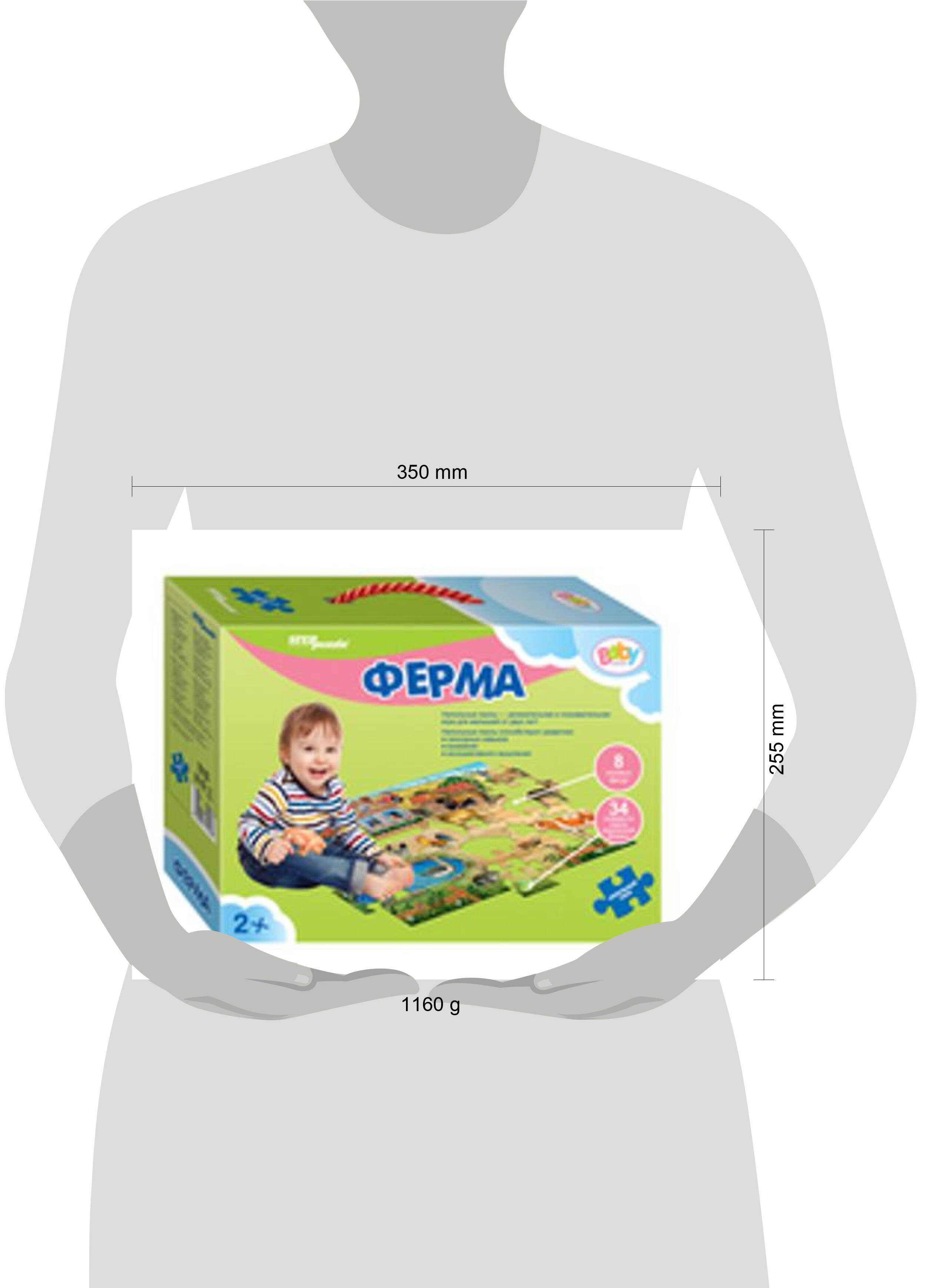 Способствует развитию сенсорных навыков, внимания. Материал: плотный картон. В наборе: 8 игровых фигур, 34 элемента пазла. Размер картинки: 1050x680. Возрастная группа: 2+.