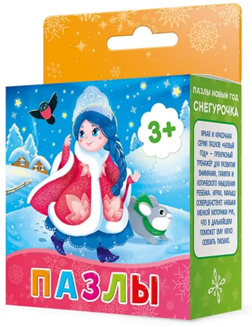 Яркая и красочная серия пазлов «Новый год» - прекрасный тренажёр для развития внимания, памяти и логического мышления ребёнка. Играя, малыш совершенствует навыки мелкой моторики рук, что в дальнейшем поможет ему легко освоить письмо.