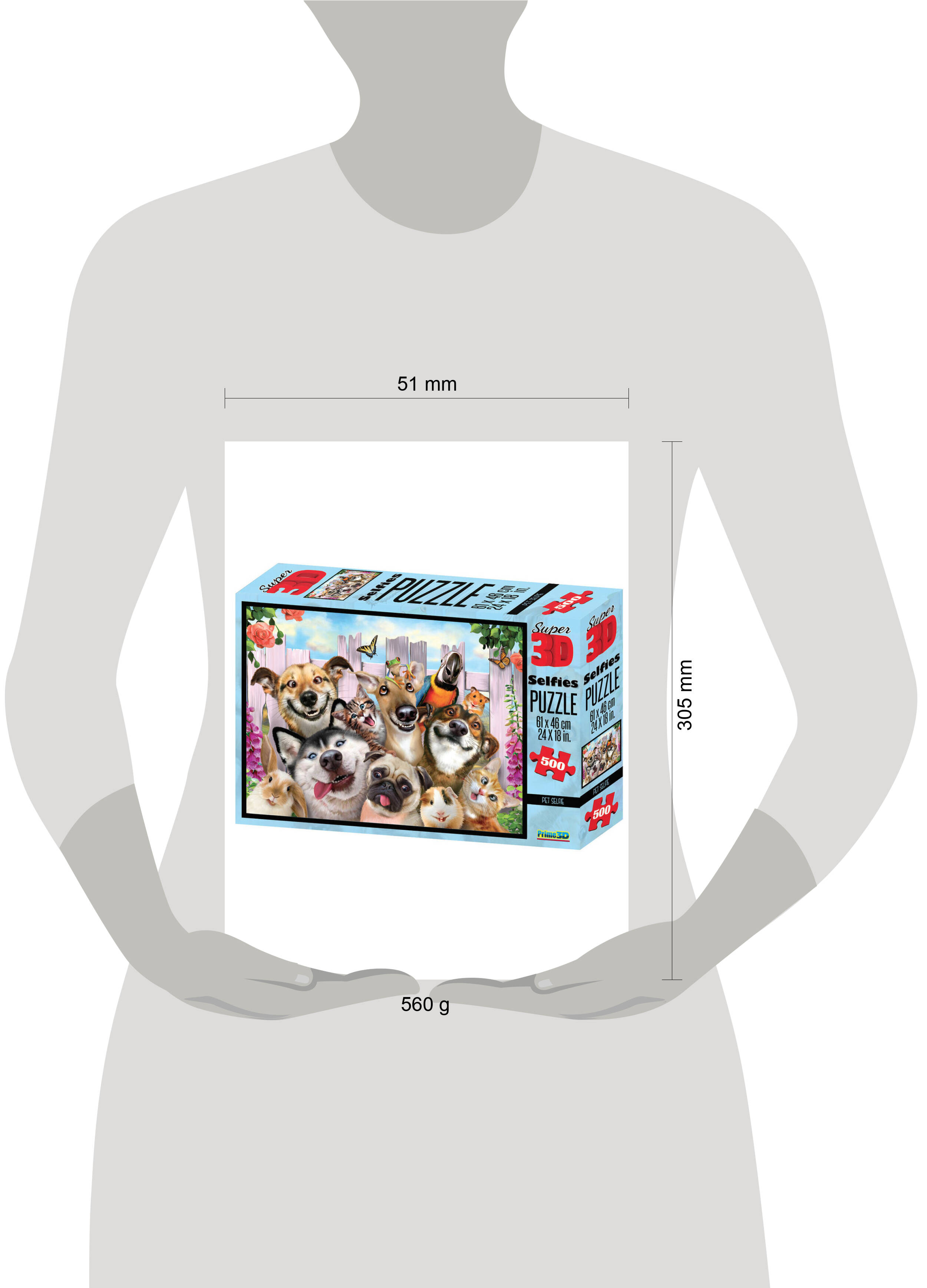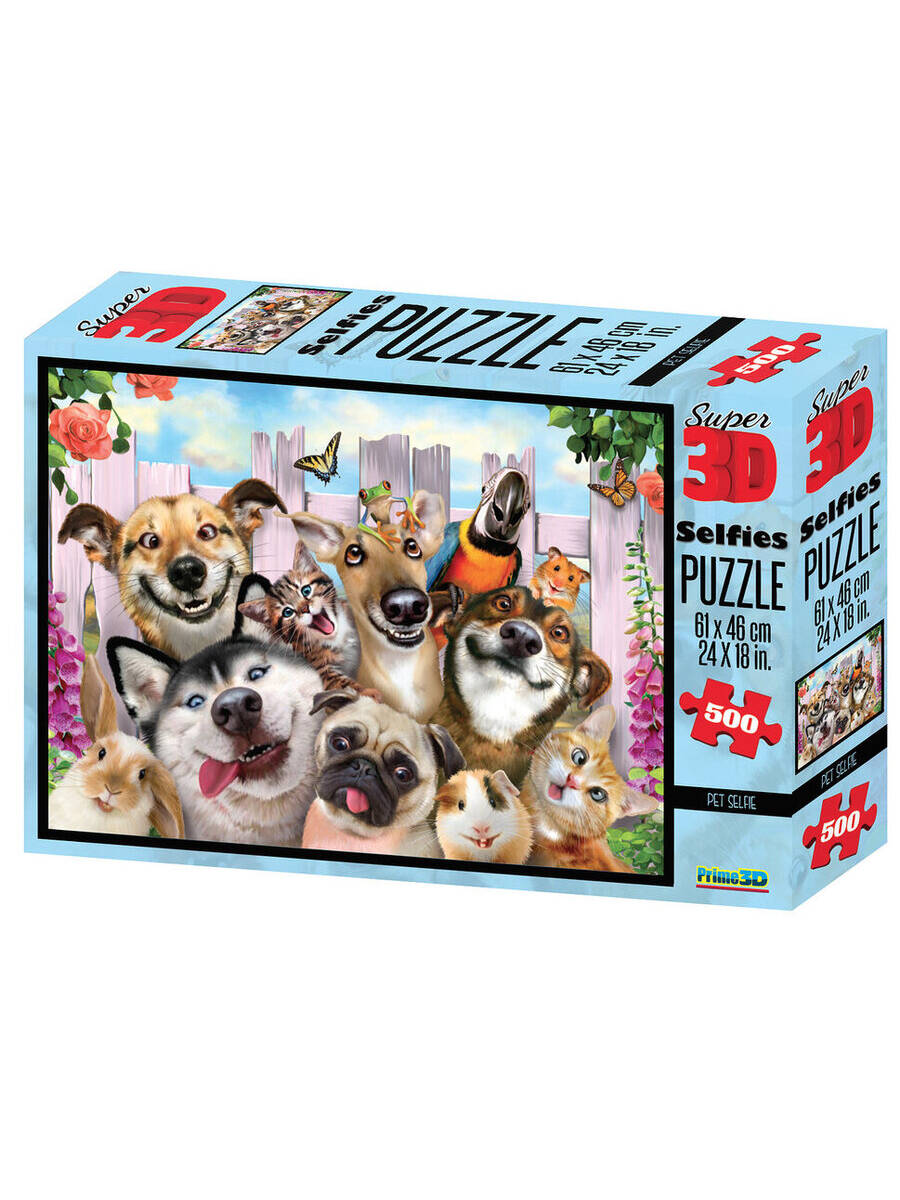 Пазл Super 3D «Селфи домашних питомцев»,500 дет.6+Размер собран.пазла 61х46см.(арт.10062) игр.-голов
