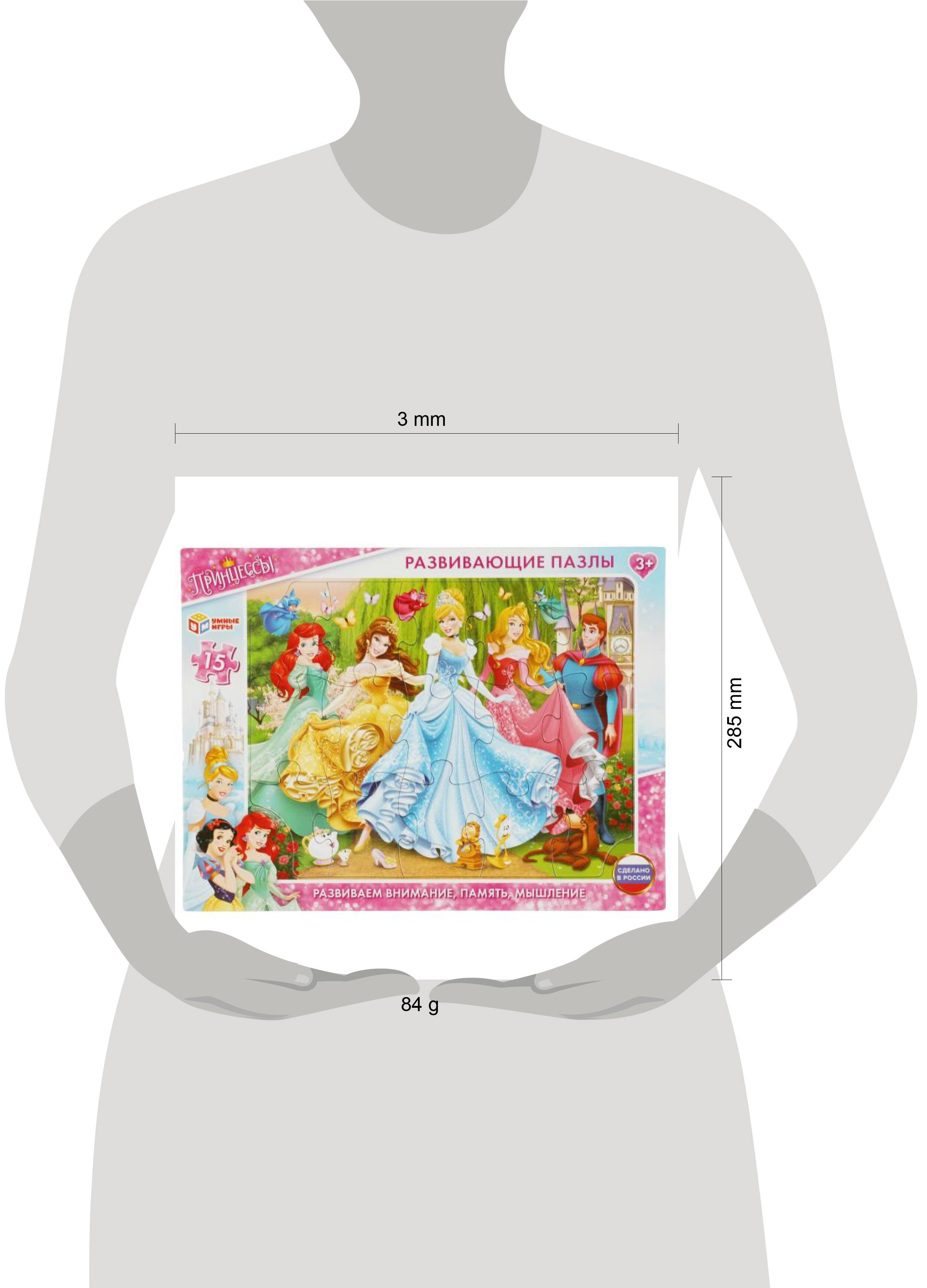 Развивающие пазлы в рамке "Принцессы" ТМ "Умные игры" непременно понравятся маленьким любознайкам: - 15 крупных деталей в комплекте - удобная рамка-подложка из плотного картона - красочные цвета Задача ребёнка - в правильной последовательности соединить пазлы друг с другом и получить в результате готовую картину с изображением прекрасных принцесс. Благодаря небольшому количеству деталей и рамке с подсказками, малыш без труда сможет выполнить задание, с каждым разом делая это всё лучше и быстрее. Собирая пазлы ТМ "Умные игры", ребёнок будет развивать: - внимание - память - мышление - моторику - усидчивость Размер: 29 x 22 x 0,5 см. Материал: картон. Рекомендовано детям от 3-х лет.| Издательство | С-Маркет ООО |