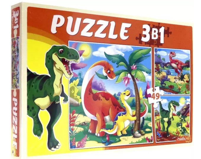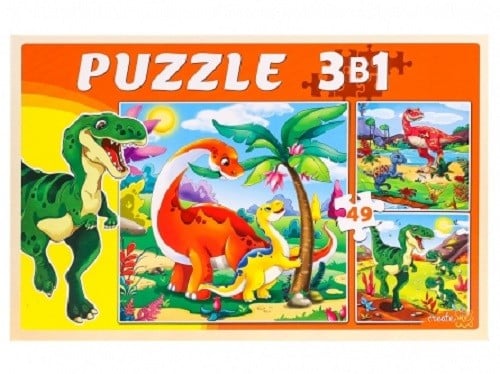 Пазл 3 в 1. Мир динозавров, 49 деталей