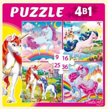 ПАЗЛЫ 4 в 1. ЧУДЕСНЫЕ ЕДИНОРОГИ (9,16, 25, 36 эл.) (Арт. П-0430)