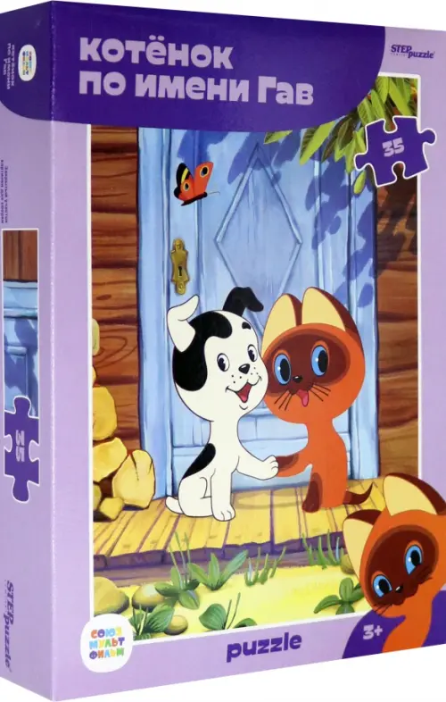 Пазл "Котенок по имени Гав" состоит из 35 элементов. На его картинке мы видим двух добрых друзей.