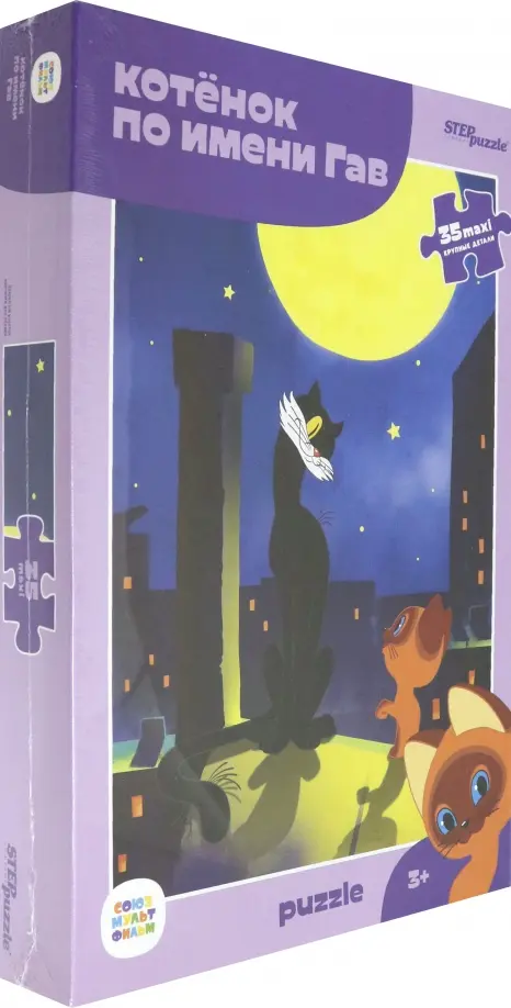 Пазл «Котенок по имени Гав» состоит из 35 крупных деталей. На его картинке мы видим большого Кота и самого котёнка Гав на фоне ночного города и крыш домов. Добрый и яркий пазл обязательно понравится детям и даже взрослым.