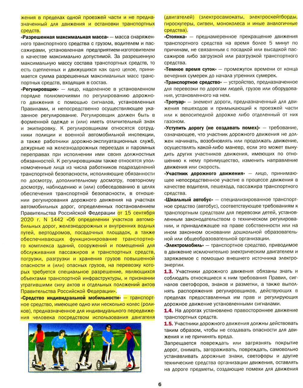 В издании опубликован текст Правил дорожного движения Российской Федерации, утверждённых постановлением Совета Министров - Правительства Российской Федерации от 23 октября 1993 года №1090, в редакции постановления Правительства Российской Федерации от 02 июня 2023 года №908, срок действия которой данным постановлением установлен с 01 сентября 2023 года по 01 марта 2029 года. Изменения, вносимые данным постановление в Правила дорожного движения, выделены в тексте зелёным фоном. Также в тексте выделены: желтым фоном - изменения, внесённые постановлением от 06 октября 2022 года №1769; розовым - постановлением от 27 мая 2023 года №837. Отдельные пункты Правил снабжены комментариями редакции, выделенными голубым цветом, а также иллюстрациями.| Издательство | Атберг 98 |